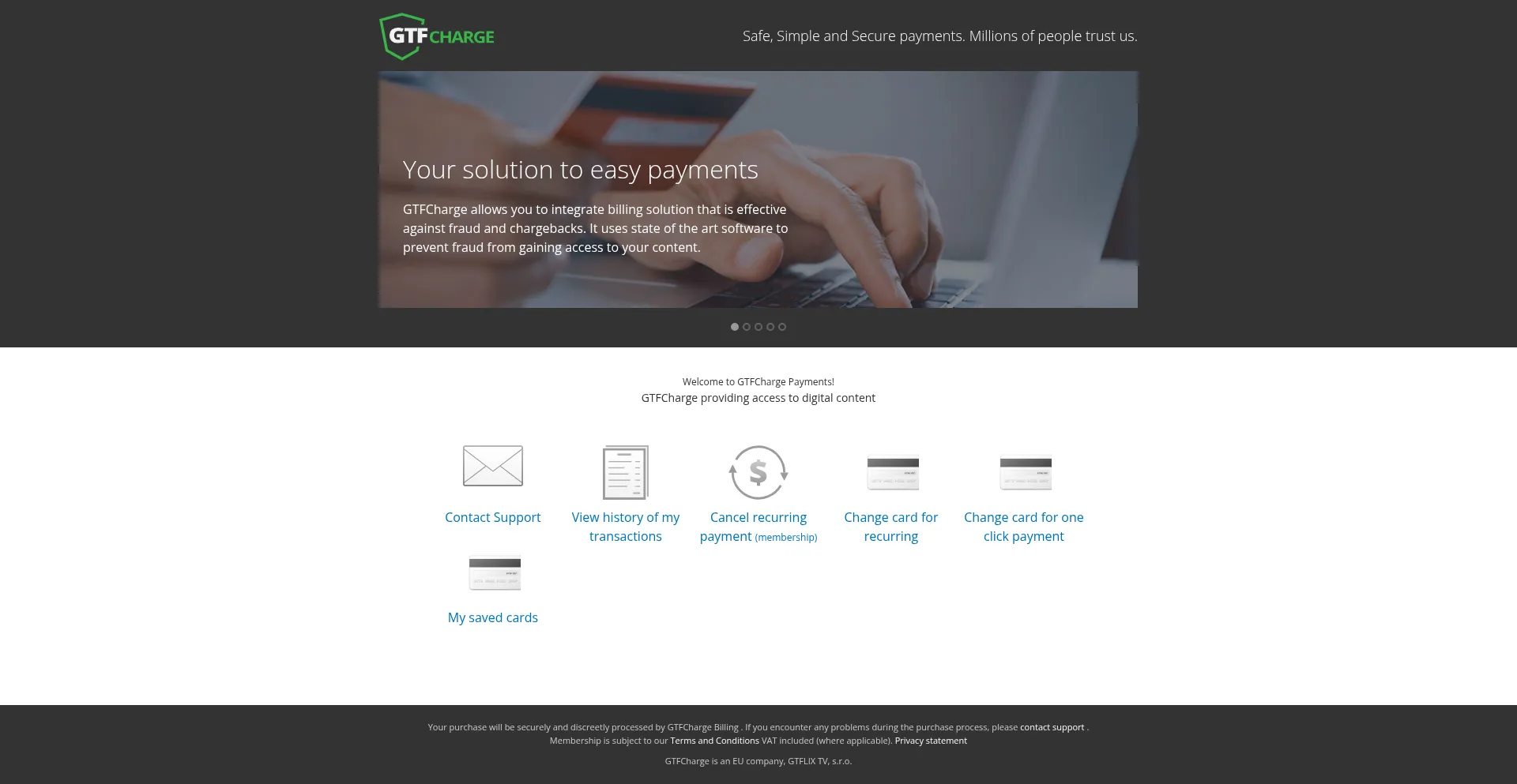GTFCharge allows you to integrate billing solution that is effective against fraud and chargebacks.