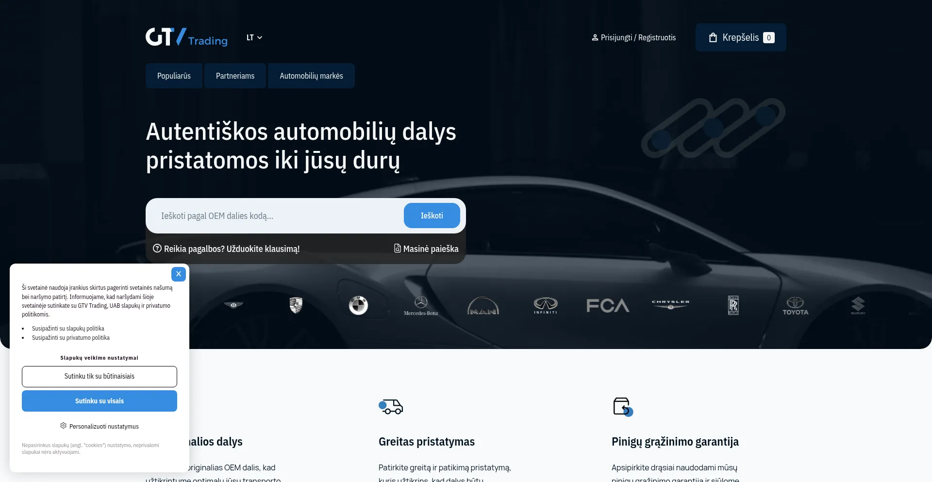 Originalios automobilių dalys ir aksesuarai BMW, Audi, VW, Mercedes-Benz, Toyota, Ford, Porsche, Land Rover, Volvo bei kitoms markėms. GTV Trading – patiki...
