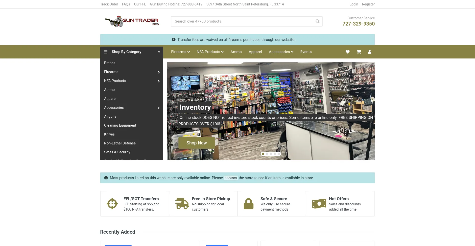Welcome to Gun Trader Den online! We buy guns! Check out out large inventory of firearms and accessories. Order online at anytime or locally at our shop in St. Petersburg Florida.
