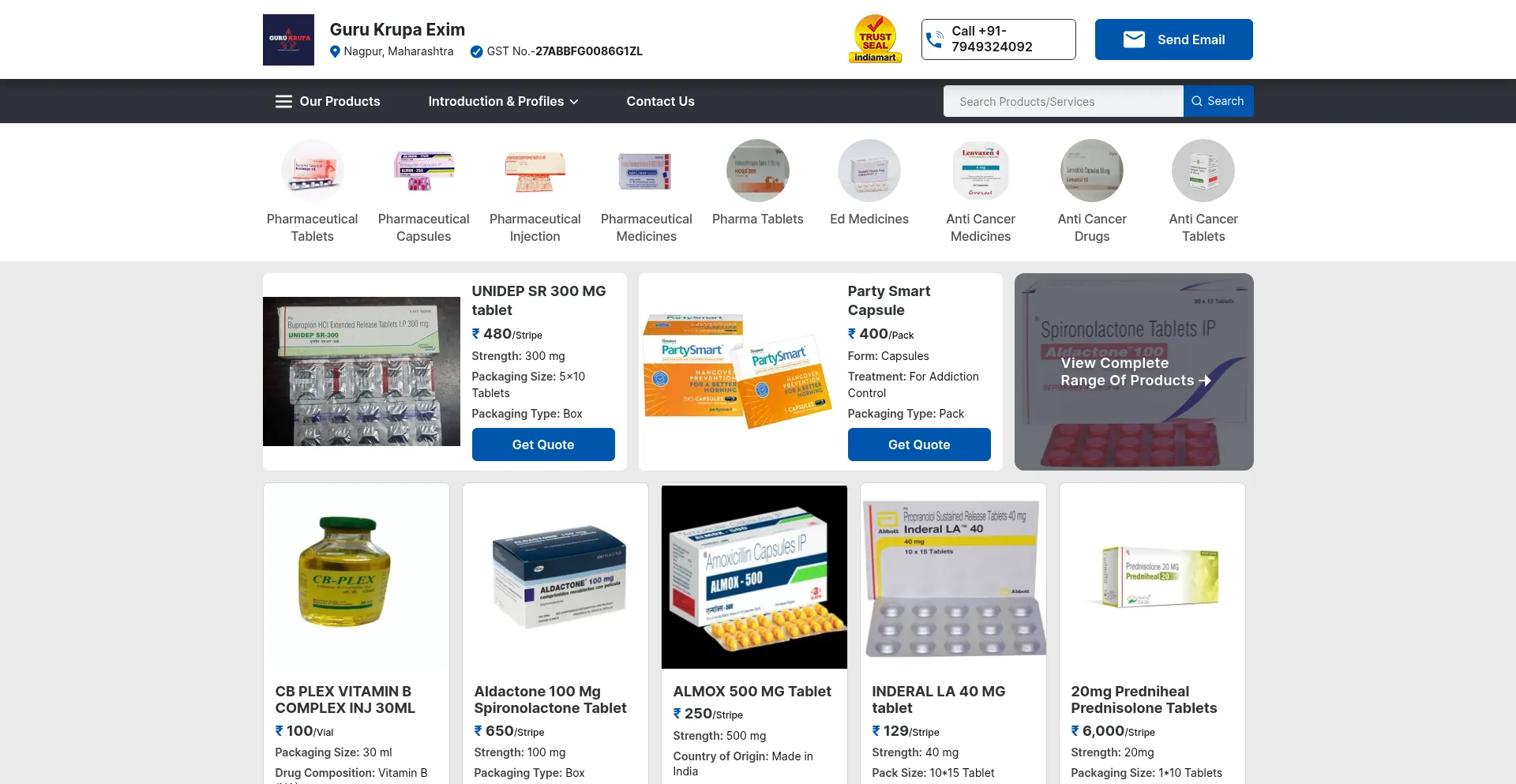Guru Krupa Exim - 100% Export Oriented Unit of Pharmaceutical Tablets, Pharmaceutical Capsules & Pharmaceutical Injection from Nagpur, Maharashtra, India