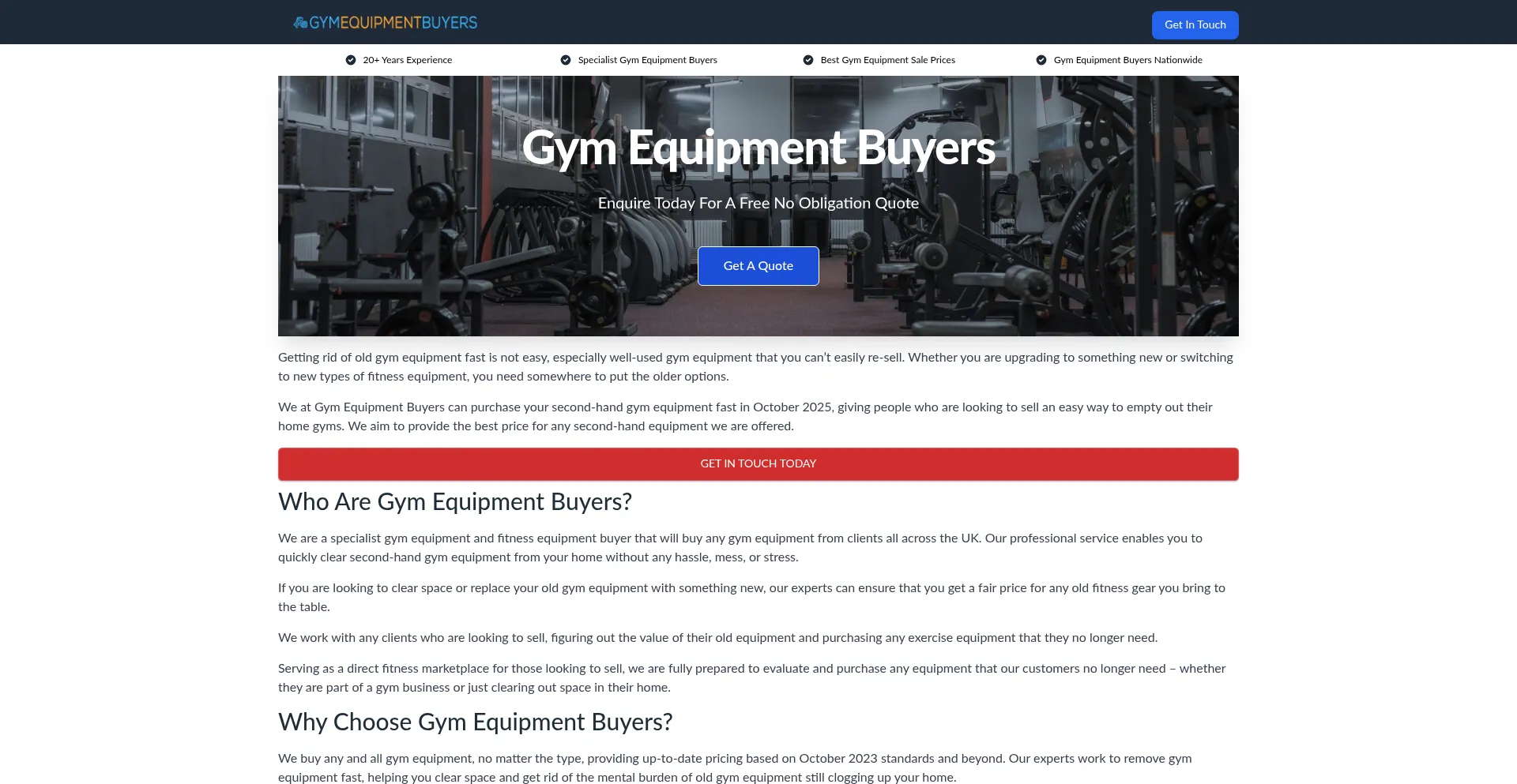We are Gym Equipment Buyers and we can offer you the best rates on your equipment. Voted the Best Company for selling gym equipment in the UK.