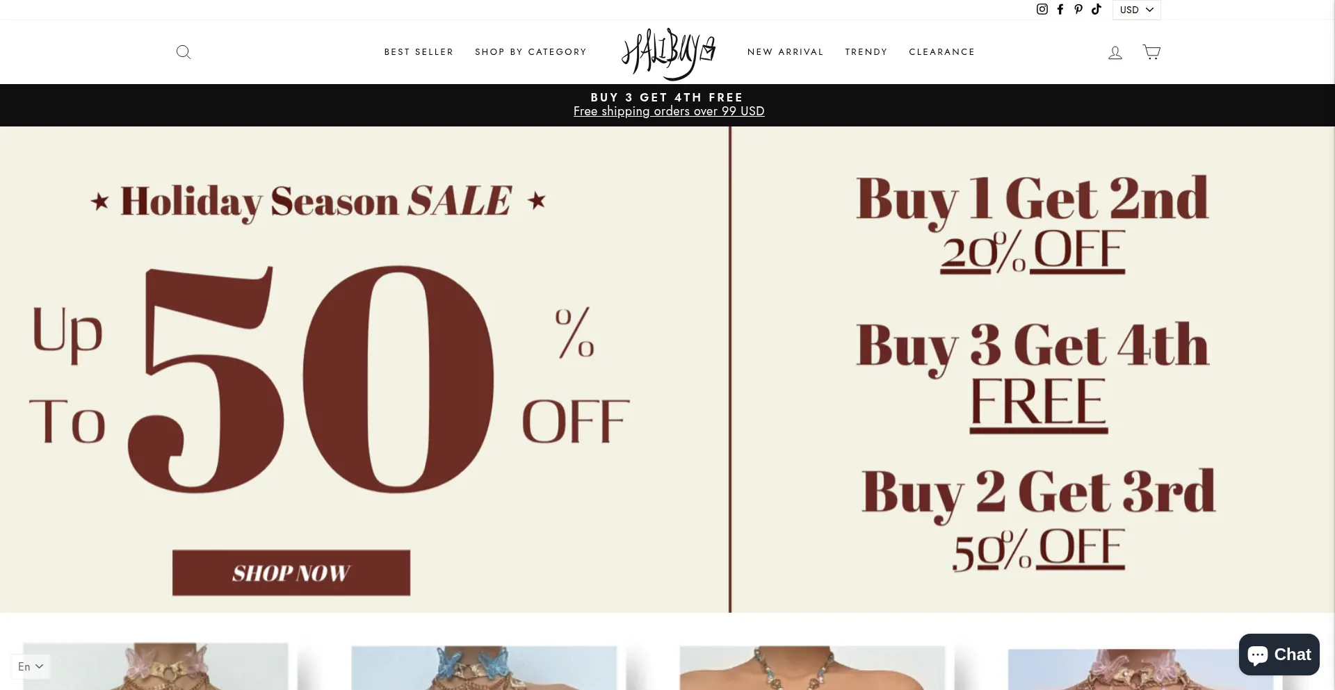 A presença de links de redes sociais no site indica que halibuyfashion.com mantém contas oficiais em redes sociais, o que é um sinal positivo de credibilidade e engajamento.