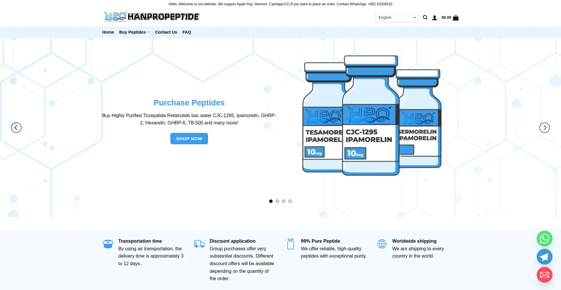 A análise indica que hanpropeptide.com opera como uma plataforma de comércio eletrônico facilitando transações online para bens ou serviços. O site implementa funcionalidade de carrinho de compras, sistemas de processamento de pagamentos e recursos de catálogo de produtos típicos de operações comerciais de varejo.