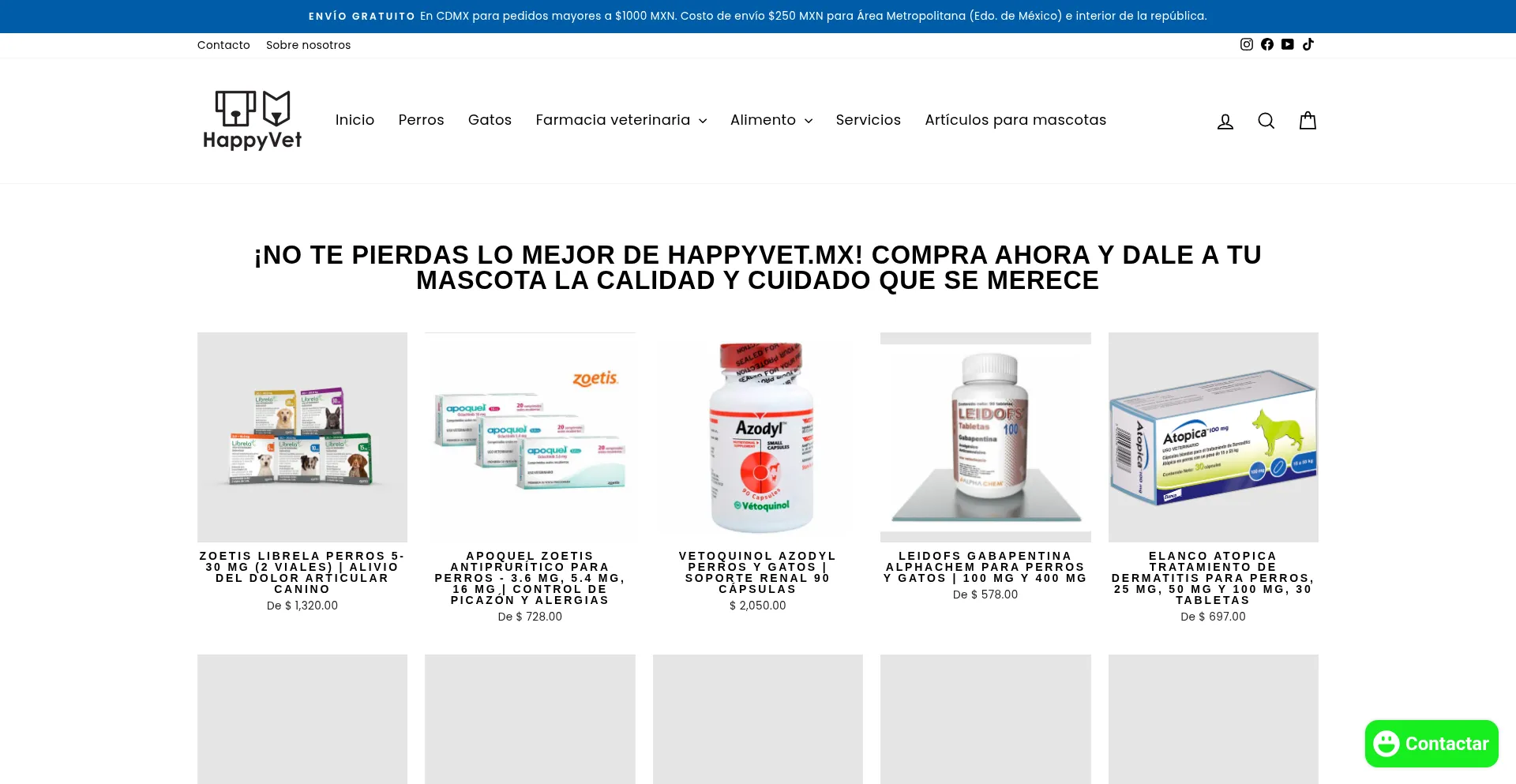 Compra en HappyVet.mx: farmacia veterinaria, alimentos, grooming, hotel y atención veterinaria en CDMX. Envíos a toda la República. ¿Dudas? WhatsApp 55-2851-2608.