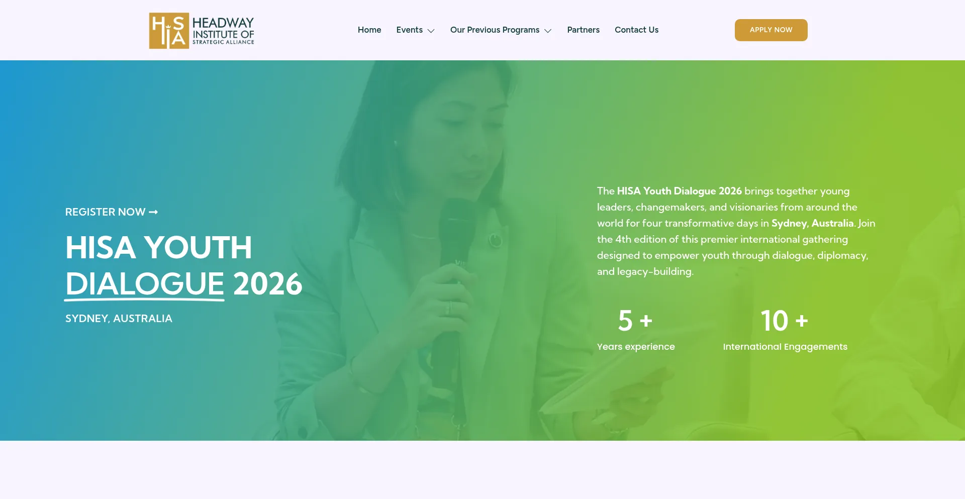 Register Now Register Now HISA YouthDialogue 2026 SYDNEY, AUSTRALIA The HISA Youth Dialogue 2026 brings together young leaders, changemakers, and visionaries from around the wor...