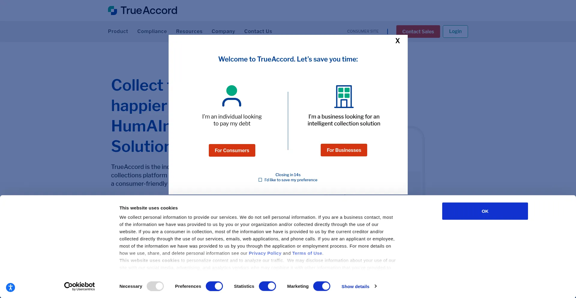 O site implementa mecanismos de consentimento de cookies em conformidade com regulamentações de privacidade como GDPR ou CCPA. Isso demonstra que hello.trueaccord.com adere a padrões de proteção de dados e fornece aos usuários controle sobre práticas de coleta de dados pessoais.