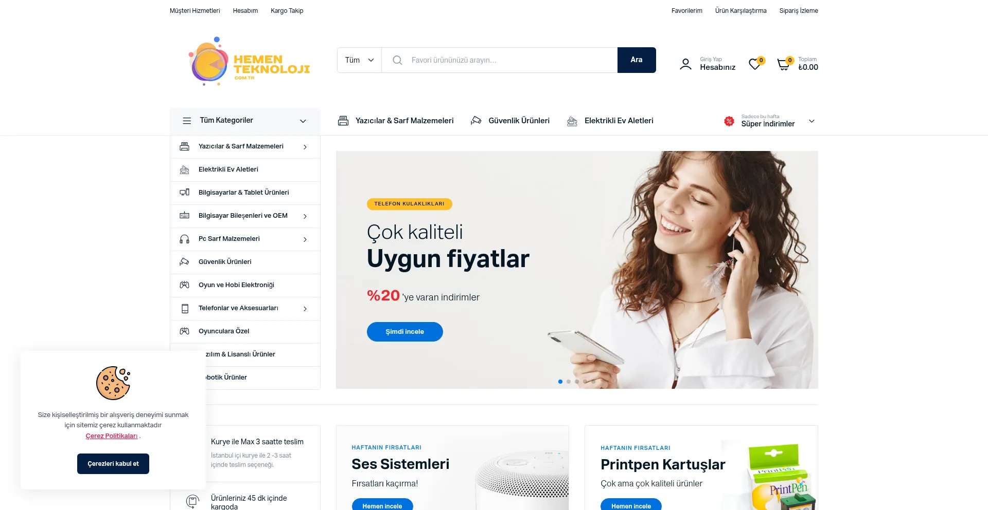 Bilgisayar, yazıcı, toner kartuş ve teknoloji ürünlerinde güvenilir online alışveriş. 2010'dan beri sektörde olan Hemen Teknoloji, hızlı kargo ve uygun fiyatlarla hi...