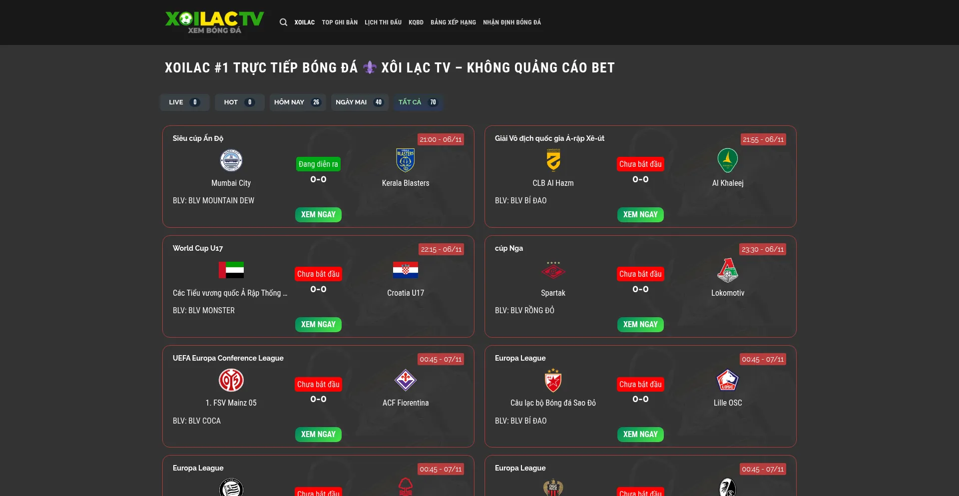 Xôi lạc tv xem bóng đá trực tiếp không quảng cáo nội dung cá cược 🎖️ Link truy cập xoilac tv chuẩn nhất - BLV Nhà Đài ✔️ Truc tiep bong da ...