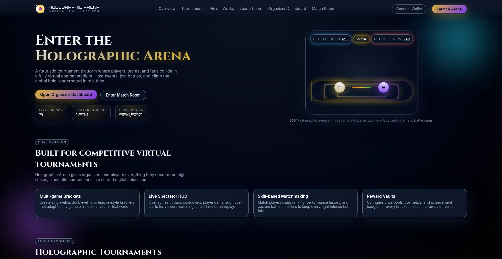 Holographic Arena – Virtual battle & tournament platform for futuristic competitions.