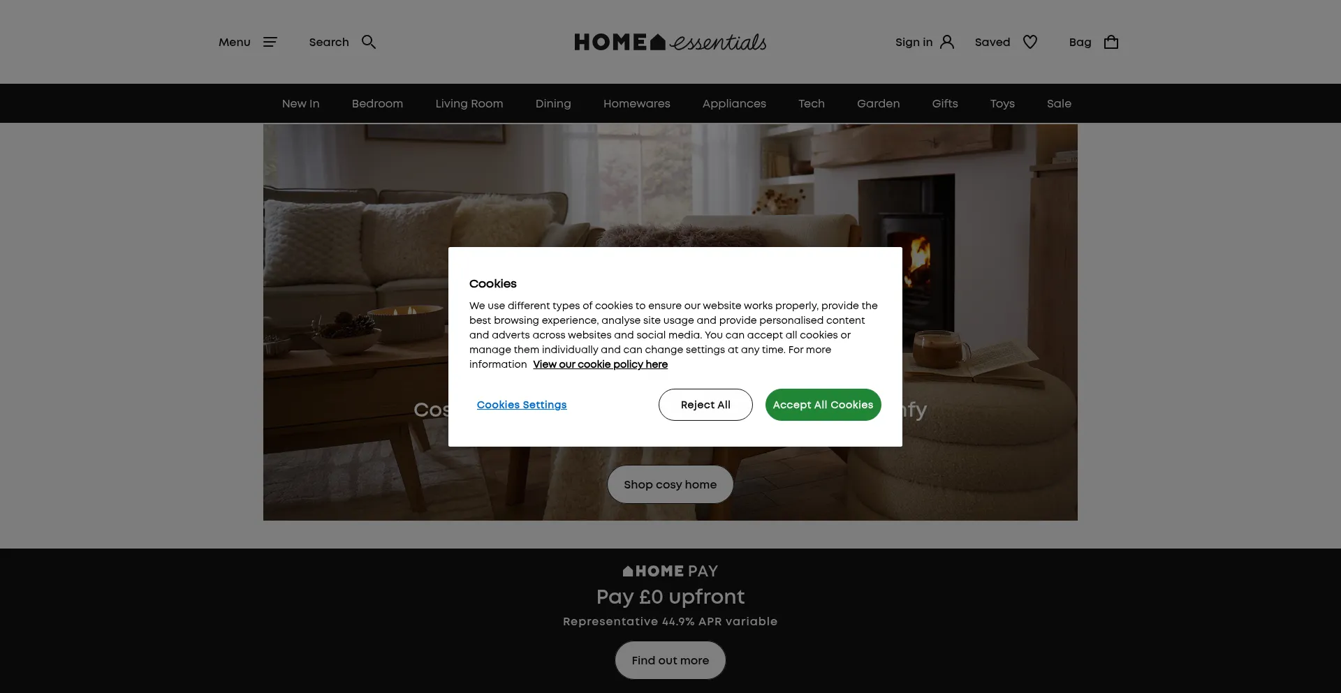 O site implementa mecanismos de consentimento de cookies em conformidade com regulamentações de privacidade como GDPR ou CCPA. Isso demonstra que homeessentials.co.uk adere a padrões de proteção de dados e fornece aos usuários controle sobre práticas de coleta de dados pessoais.