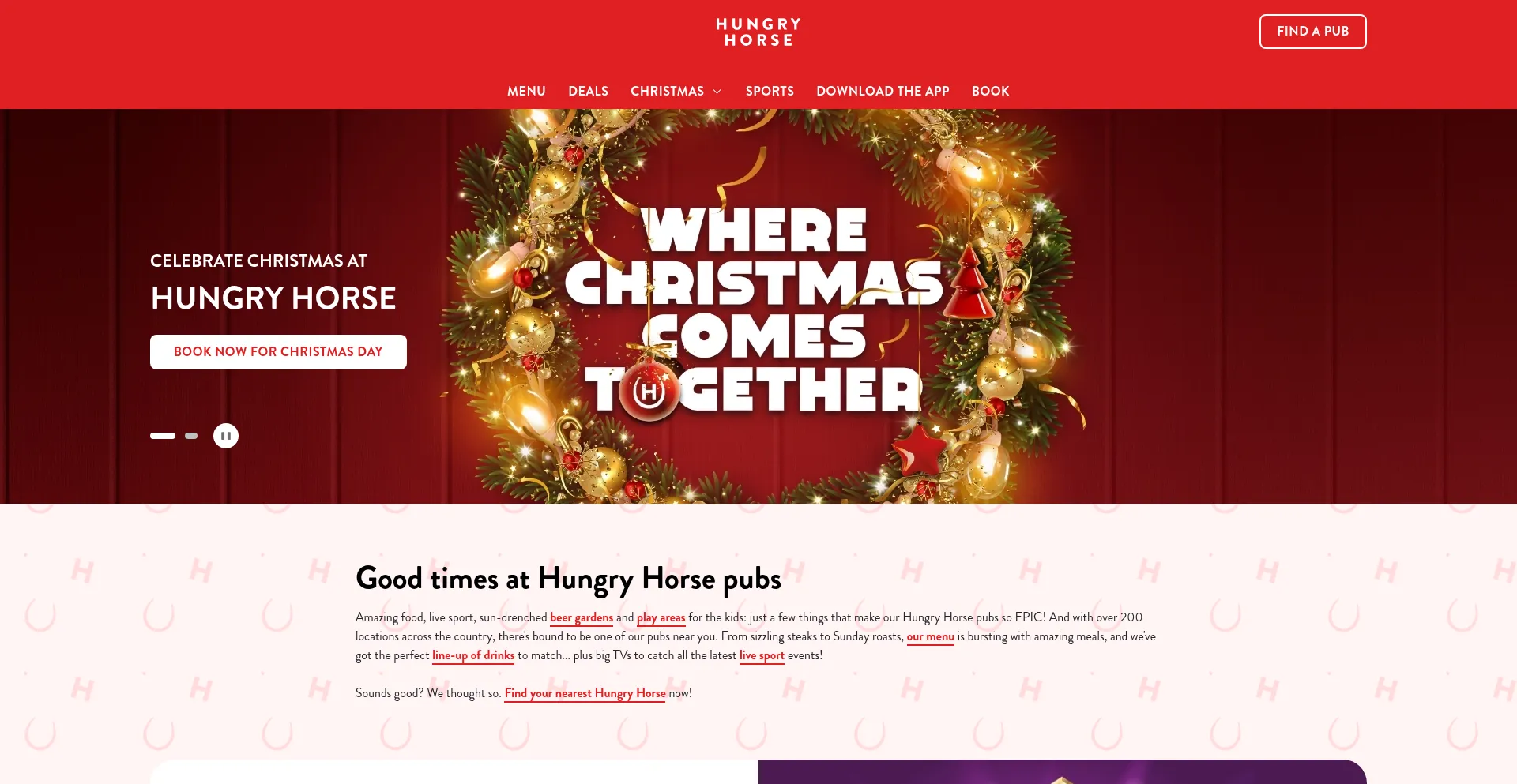 Head to Hungry Horse for epic food and drinks, live sports and family fun! With over 250 locations nationwide, find your nearest pub and join us today!