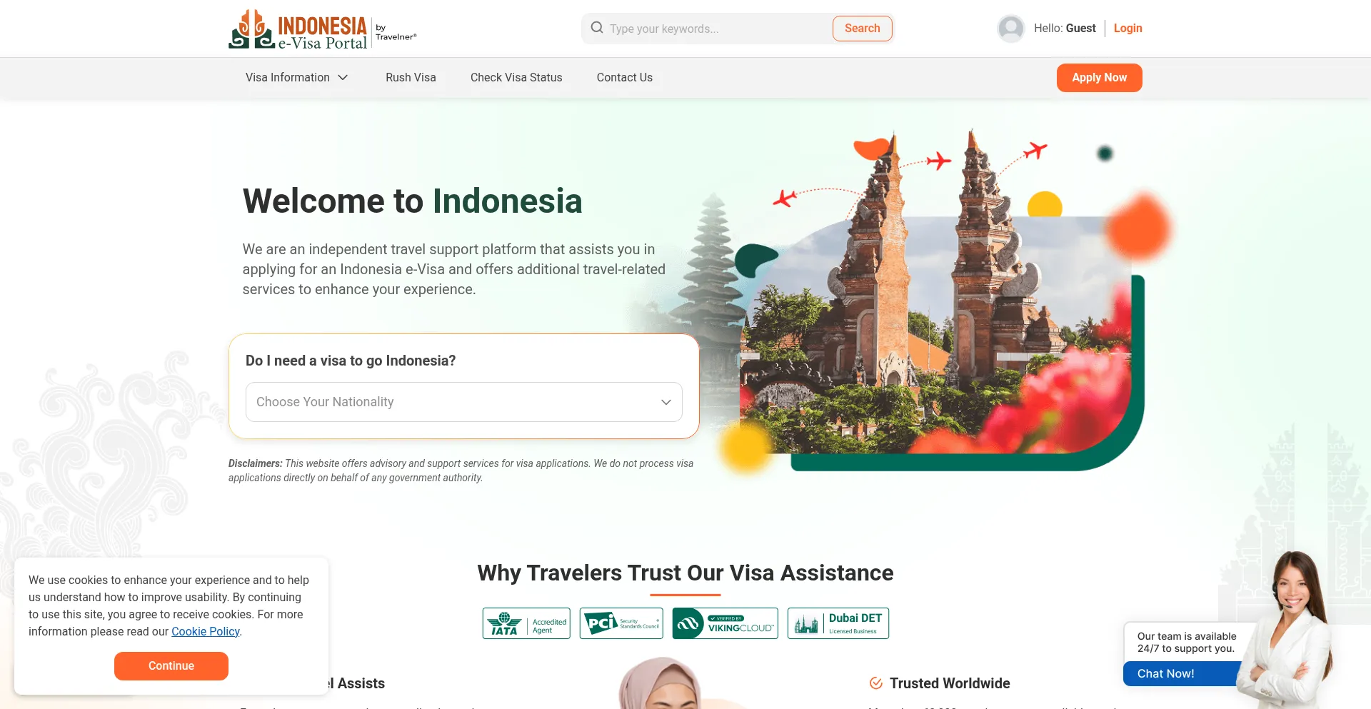 Through our website, you can apply for the e-Visa application form online in a convenient way without having to go to apply in the Indonesia embassy on your own.