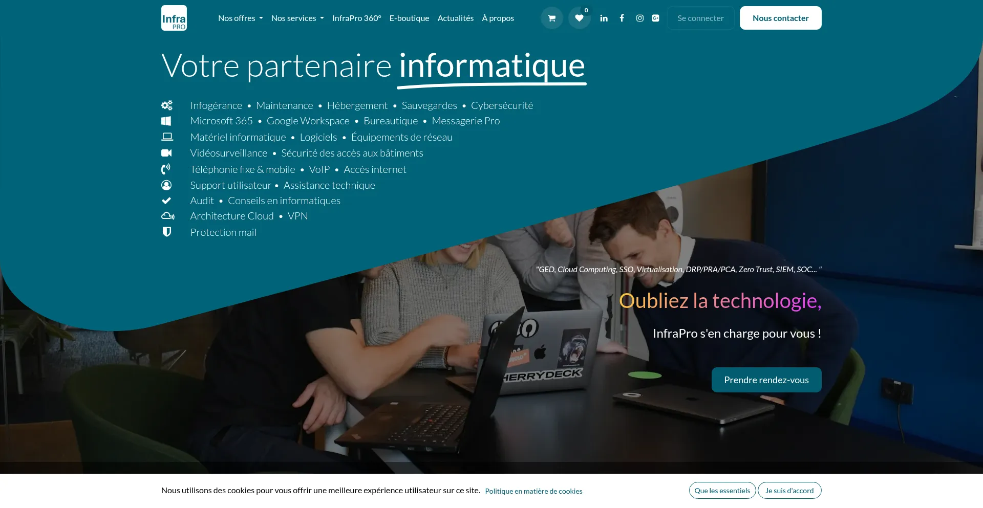 Expert en gestion, maintenance & sécurité des parcs informatiques sous Microsoft 365 & Google Workspace (infogérance). Vente ou leasing de matériels & logiciels. Hébergemen...