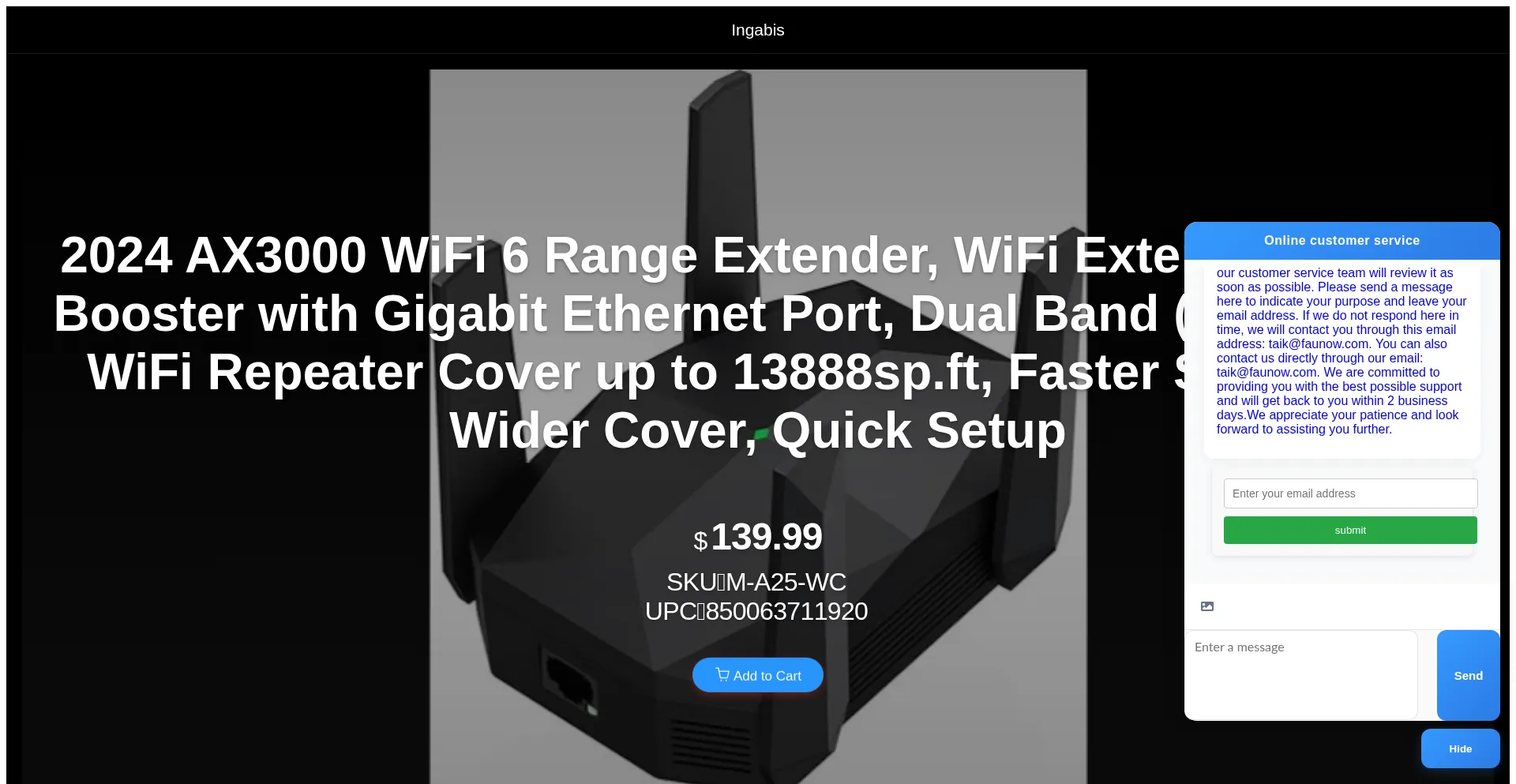 Ingabis.com é um site de e-commerce fraudulento que aceita pagamentos e rouba dados pessoais através de táticas enganosas.