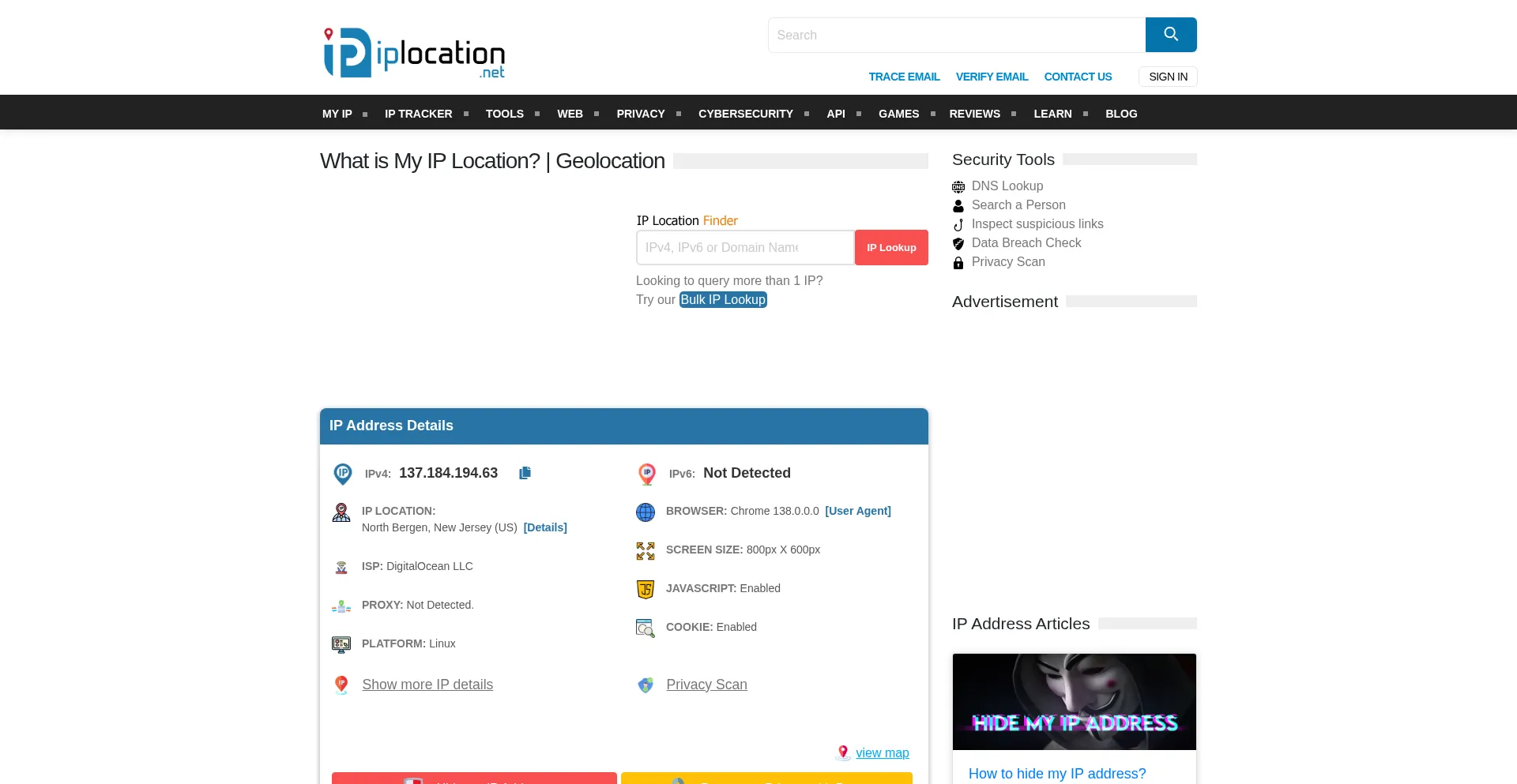 Iplocation → Verificação de segurança