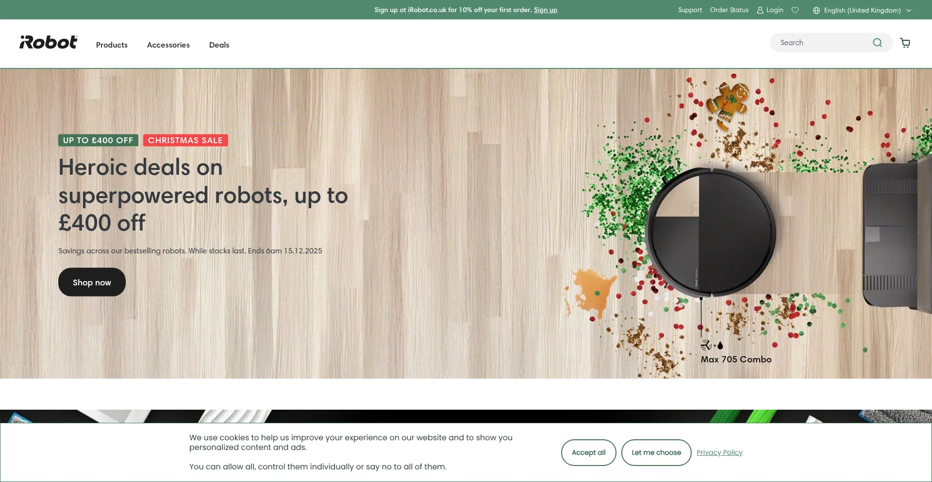 O site implementa mecanismos de consentimento de cookies em conformidade com regulamentações de privacidade como GDPR ou CCPA. Isso demonstra que irobot.co.uk adere a padrões de proteção de dados e fornece aos usuários controle sobre práticas de coleta de dados pessoais.