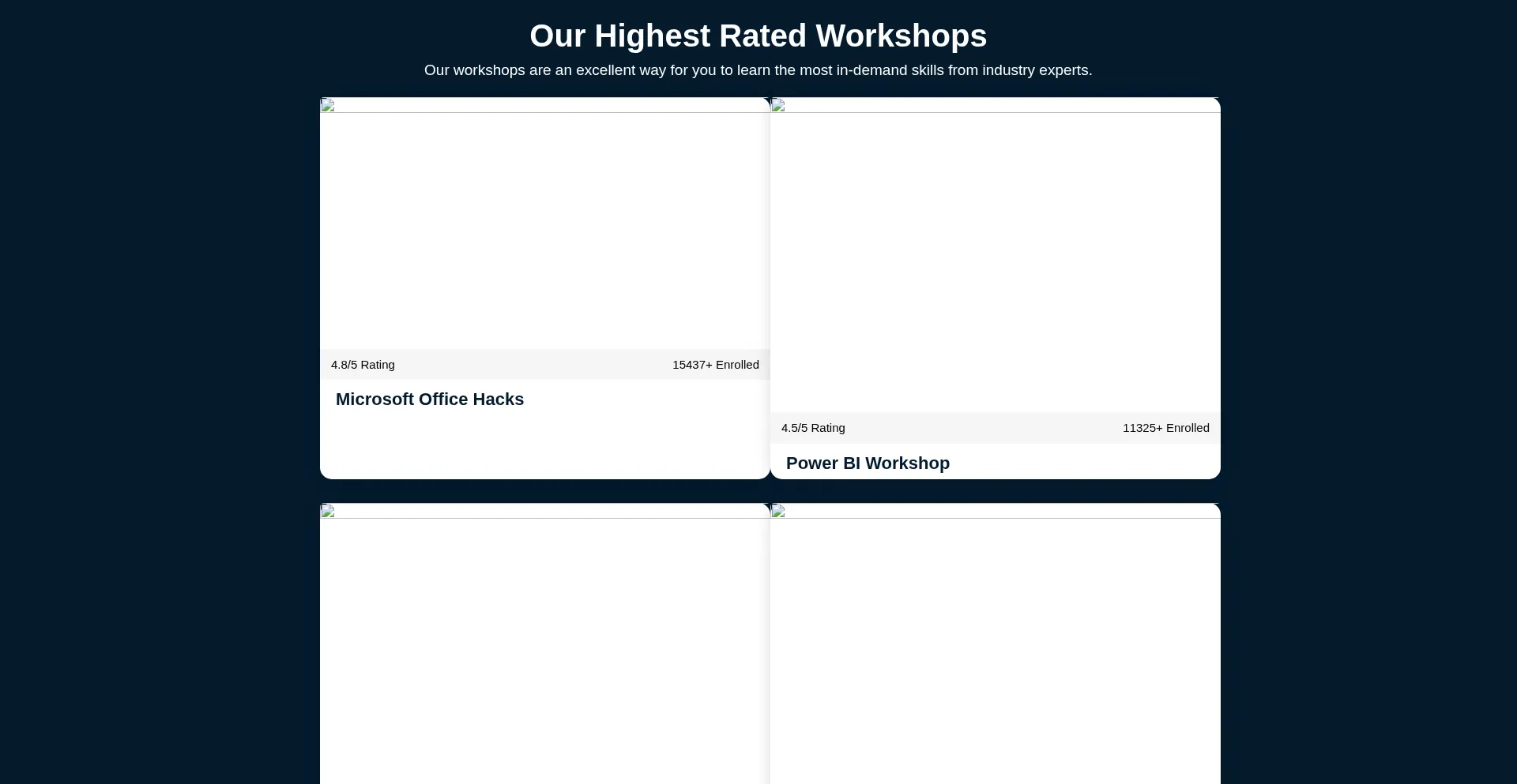 Our workshops are an excellent way for you to learn the most in-demand skills from industry experts.