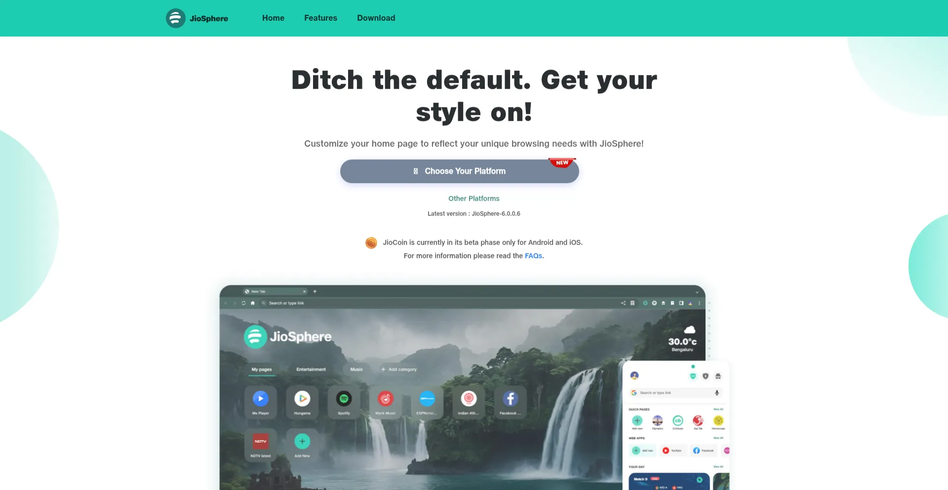 Customize your home page to reflect your unique browsing needs with JioSphere!