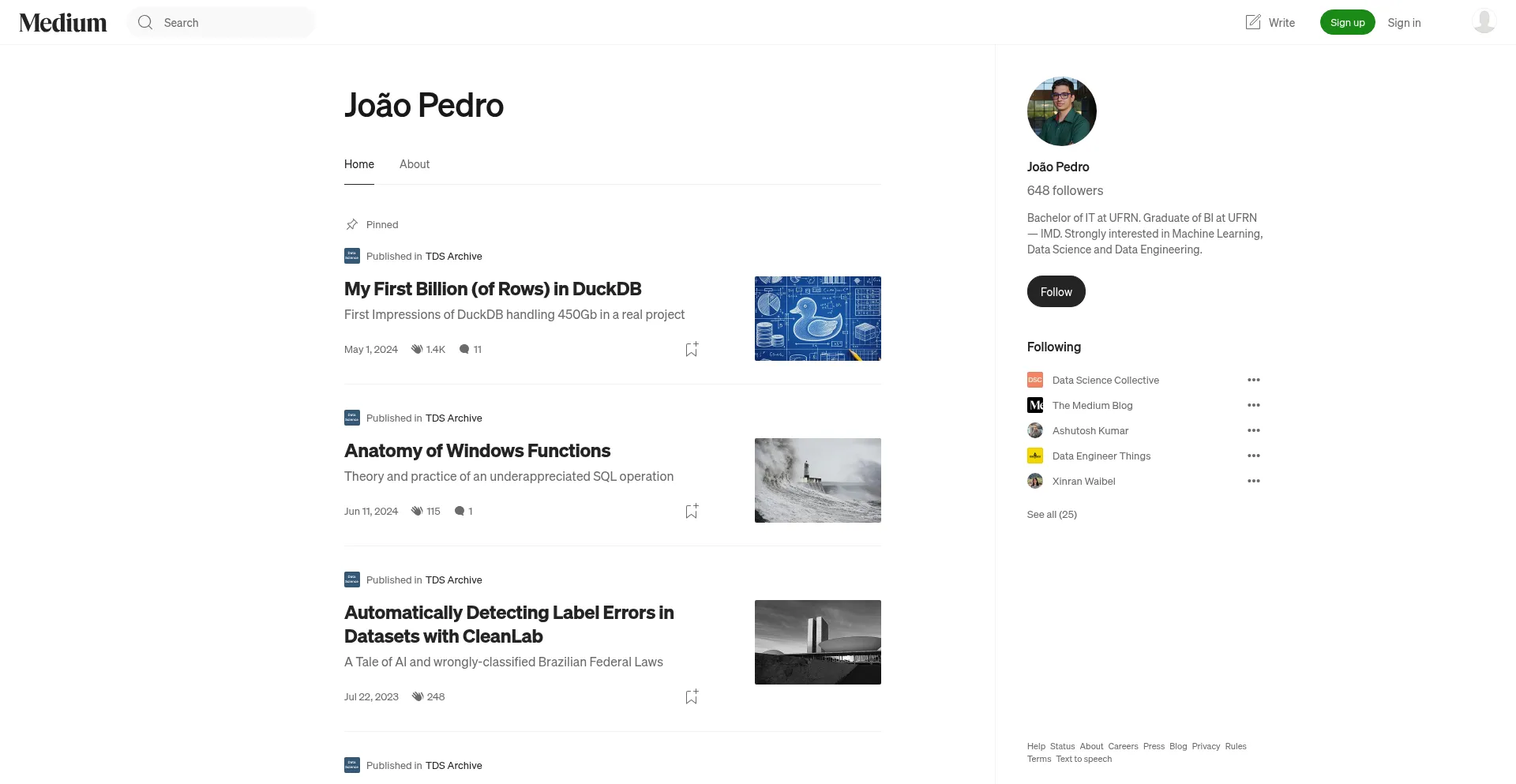 Read writing from João Pedro on Medium. Bachelor of IT at UFRN. Graduate of BI at UFRN — IMD. Strongly interested in Machine Learning, Data Science and Data Engineering.