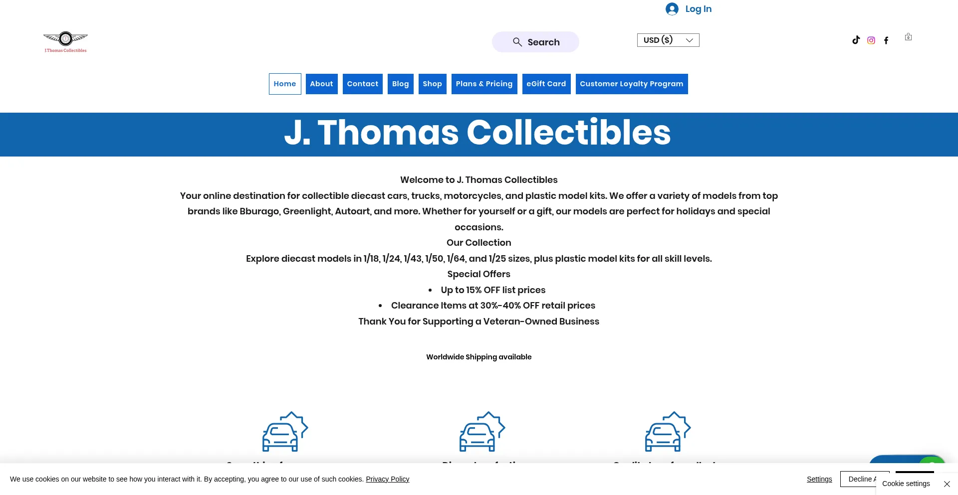 J.Thomas Collectibles: Your one-stop shop for diecast cars, trucks, aircraft models, and plastic model kits