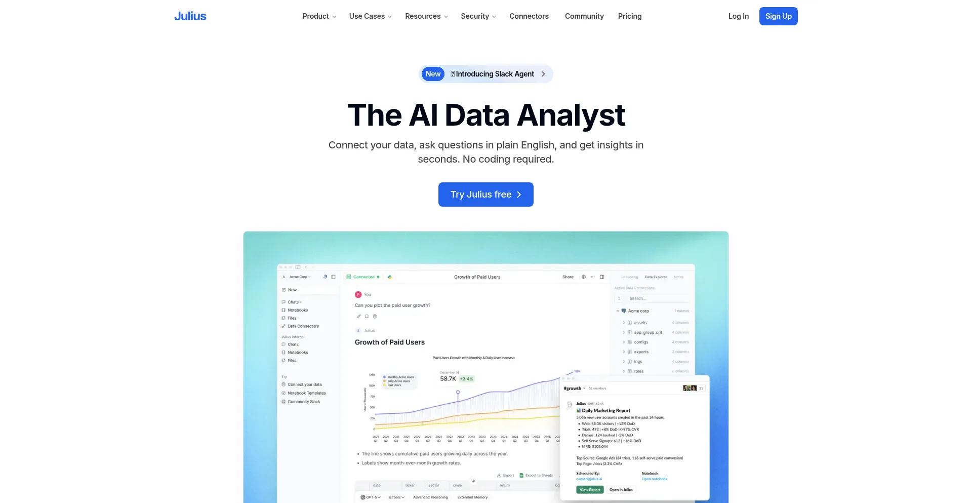 Analyze data instantly with Julius AI — your AI-powered data analyst. Turn spreadsheets into charts, forecasts, and insights in seconds. No code needed.