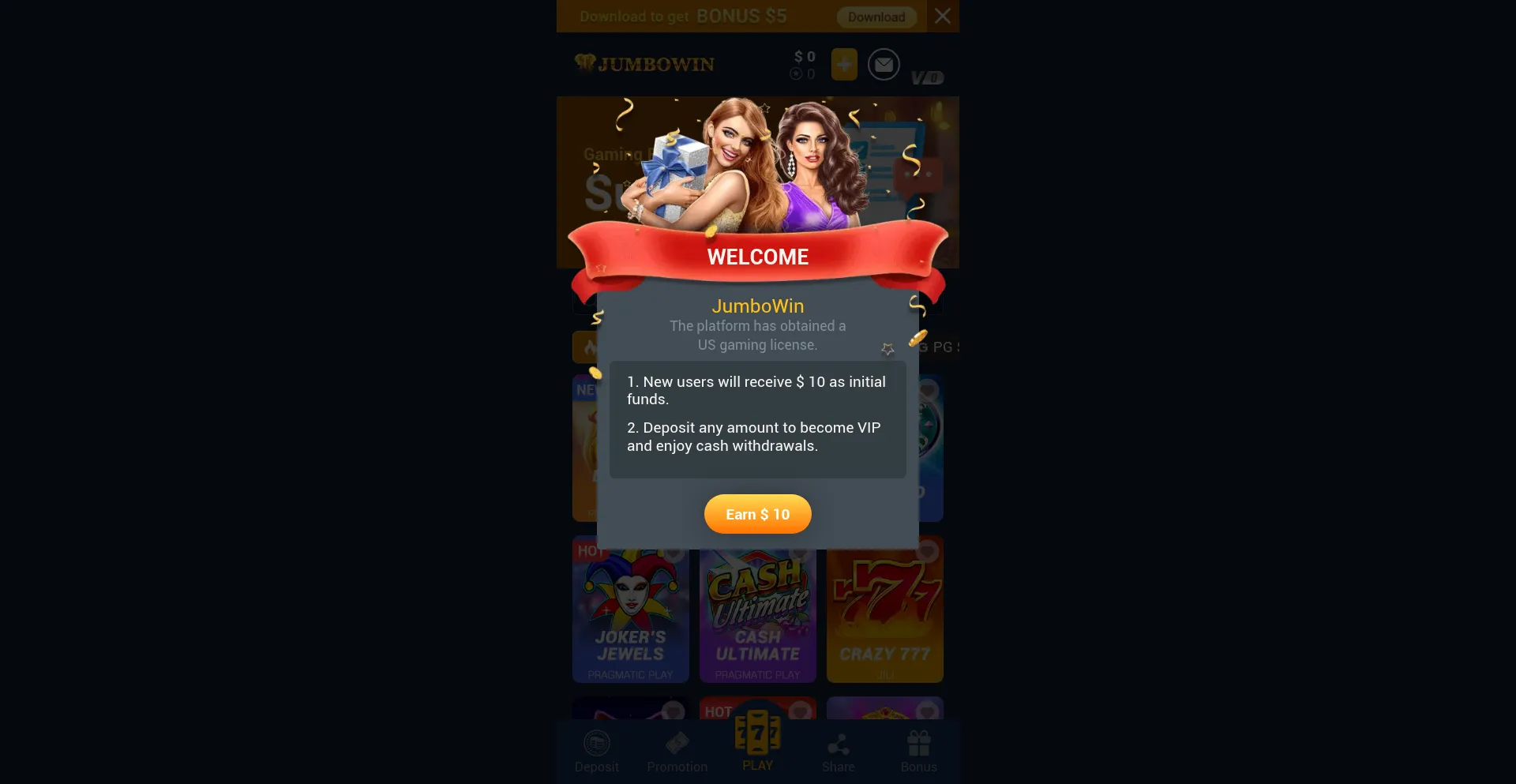 Play 500+ real money slots at JumboWin! Spin the hottest slots games and chase jackpots,like Joker's Jewels, Gold Party, and Fruits slots. Play Now!!