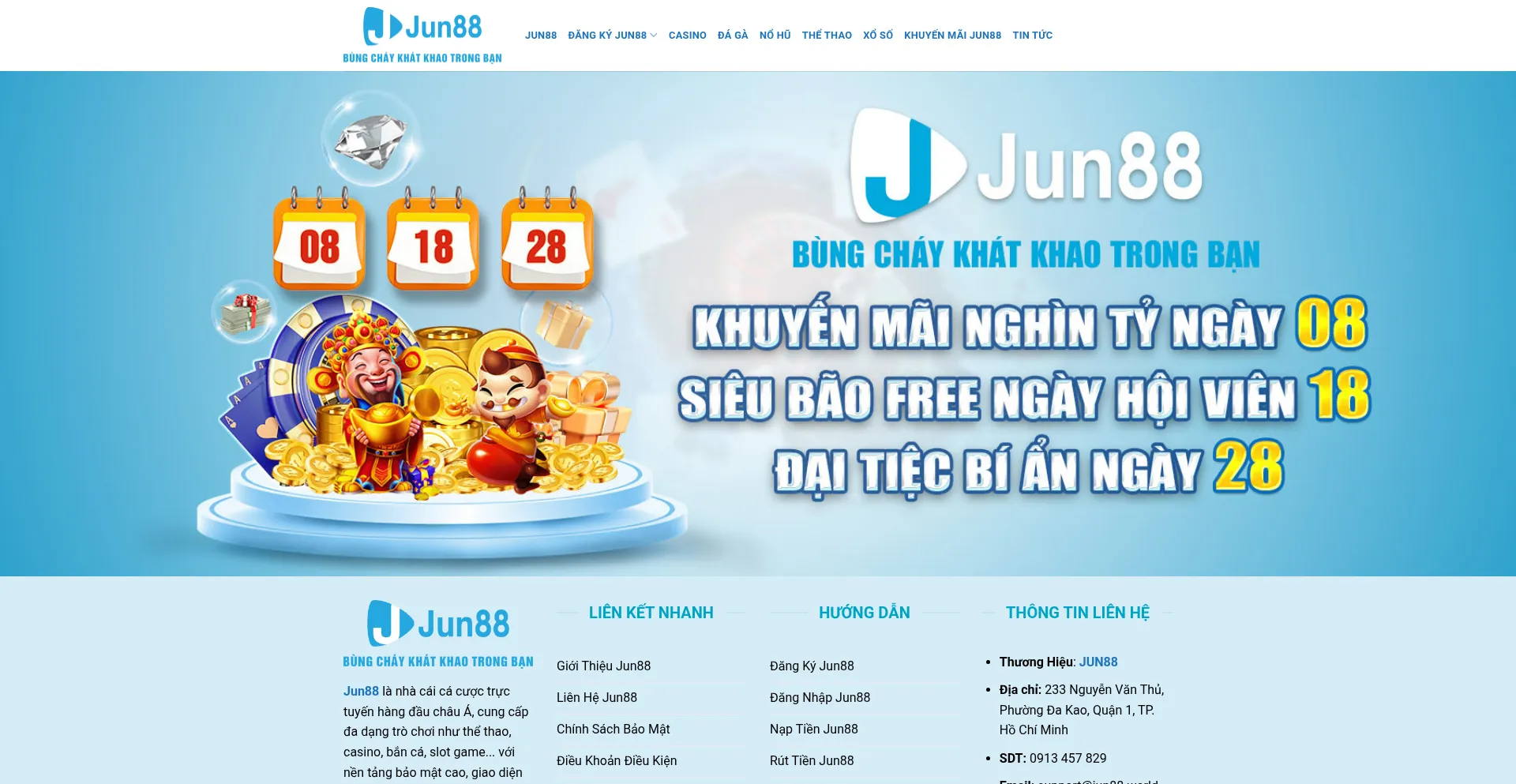 Jun88 là nhà cái cá cược trực tuyến hàng đầu châu Á, cung cấp đa dạng trò chơi như thể thao, casino, bắn cá, slot game...