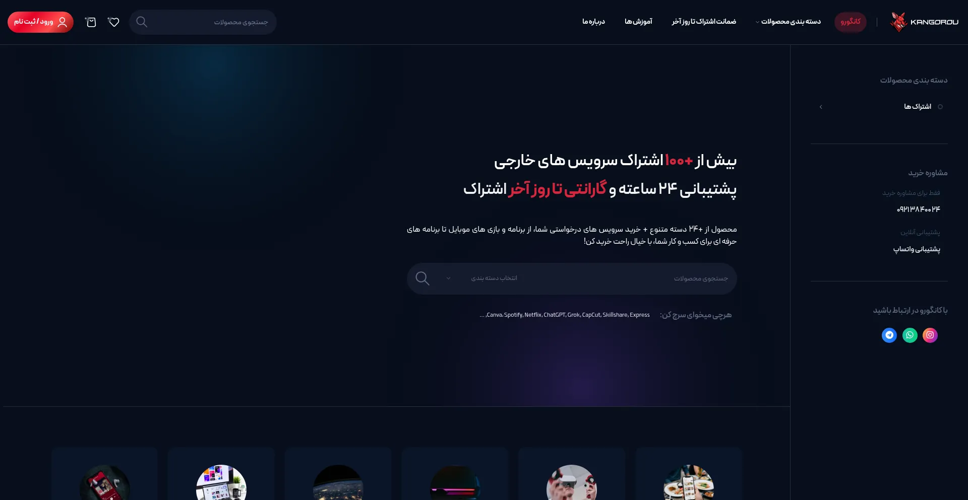 فروشگاه کانگورو | خرید سریع و ارزان اکانت های پرمیوم | ChatGPT Plus, Canva Pro, Capcut Pro, Duolingo, Express, Gemini, Spotify, Trading...