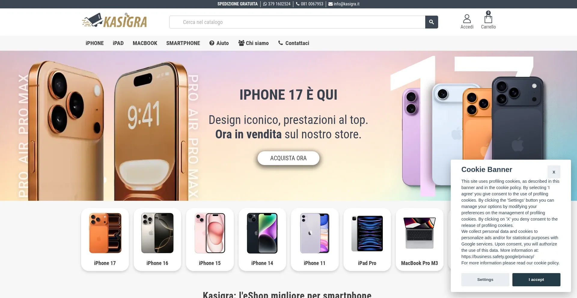 Kasigra è il punto di riferimento per prodotti Apple e Samsung a prezzi vantaggiosi. Scopri la selezione di iPhone, iPad, MacBook e Smartphone. Spedizione gratuita