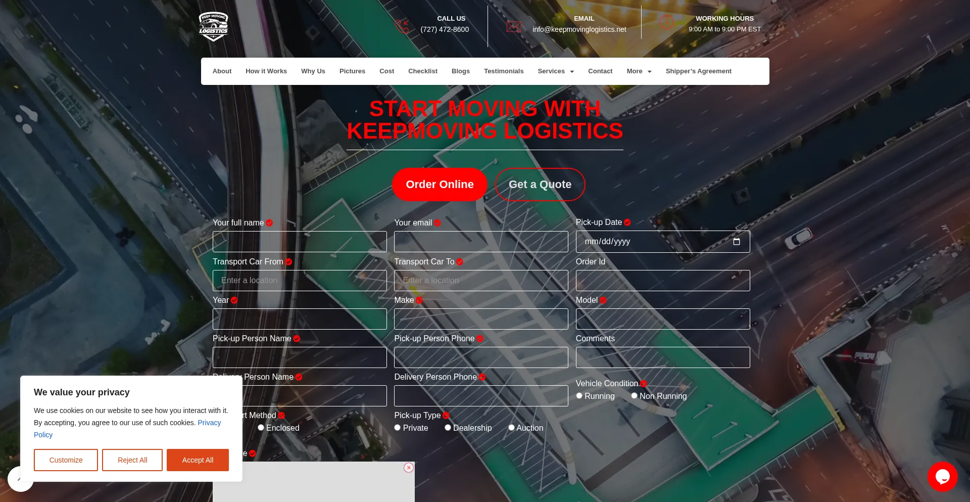 START MOVING WITH KEEPMOVING LOGISTICS Order Online Get a Quote Order Online Your full name Your email Pick-up Date Transport Car From Transport Car To Order Id Year Make Model ...
