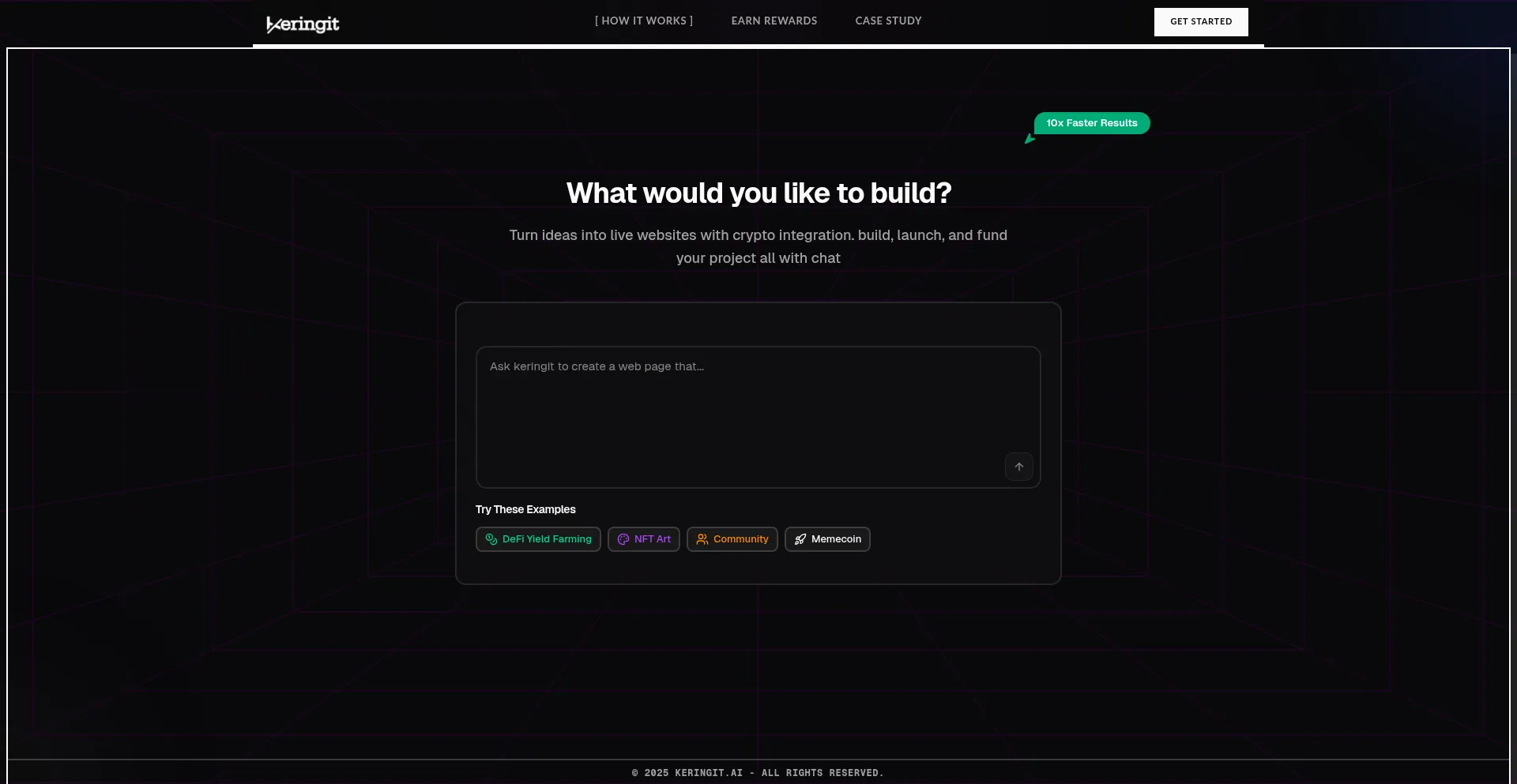 Generate beautiful, responsive landing pages with Web3 wallet integration using natural language descriptions. Part of the Keringit.ai ecosystem.