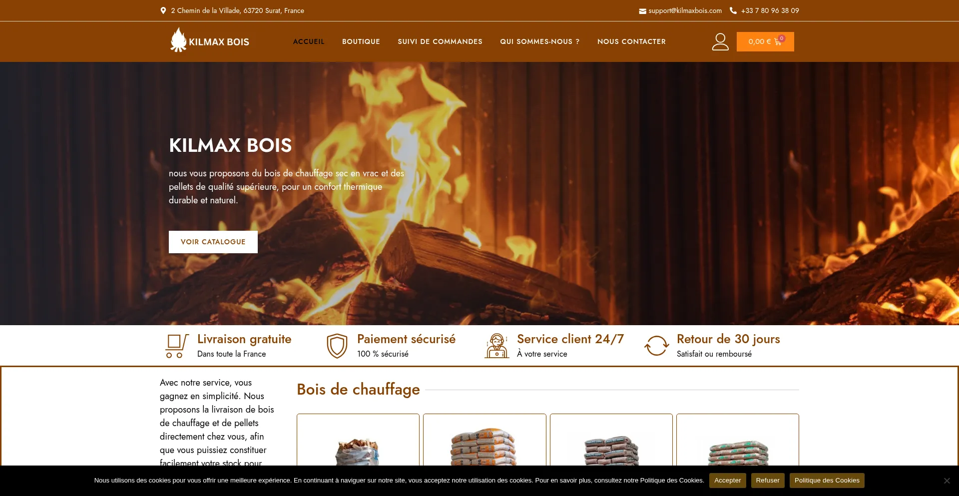 Shopping, Firewood, France, Wordpress Platform, Google Tag Manager, Cloudflare Browser Insights, UIkit Framework, Young Domain