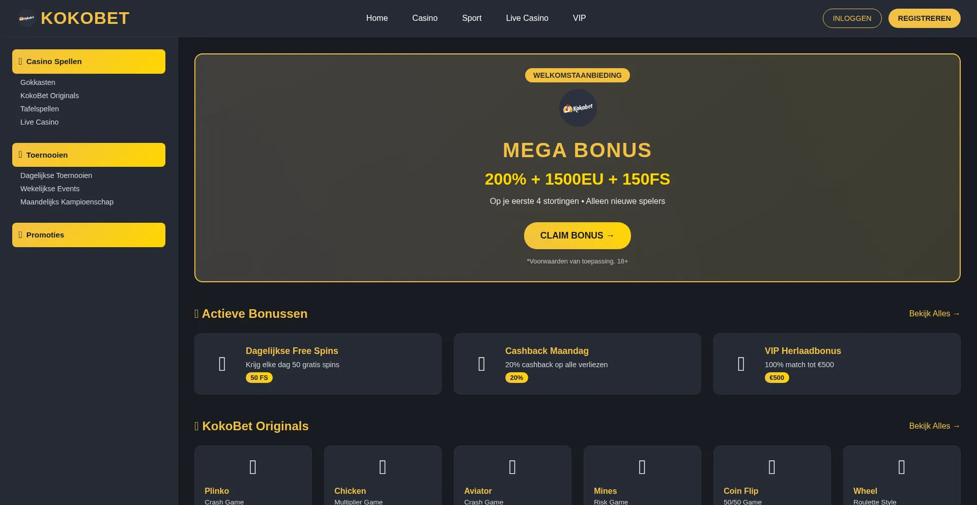 Speel bij Kokobet Casino: geniet van populaire slots, live casino en hoge bonussen. Veilig gokken, snelle uitbetalingen en 24/7 klantenservice.