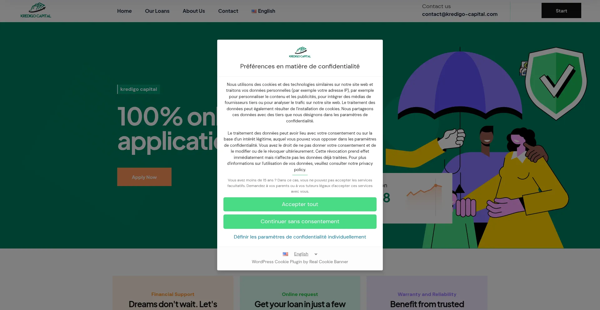 O site implementa formulários de coleta de dados solicitando informações pessoais incluindo nomes, endereços de e-mail, números de telefone ou outros detalhes sensíveis. Os usuários devem verificar a legitimidade de kredigo-capital.com e revisar políticas de privacidade antes de enviar dados pessoais.