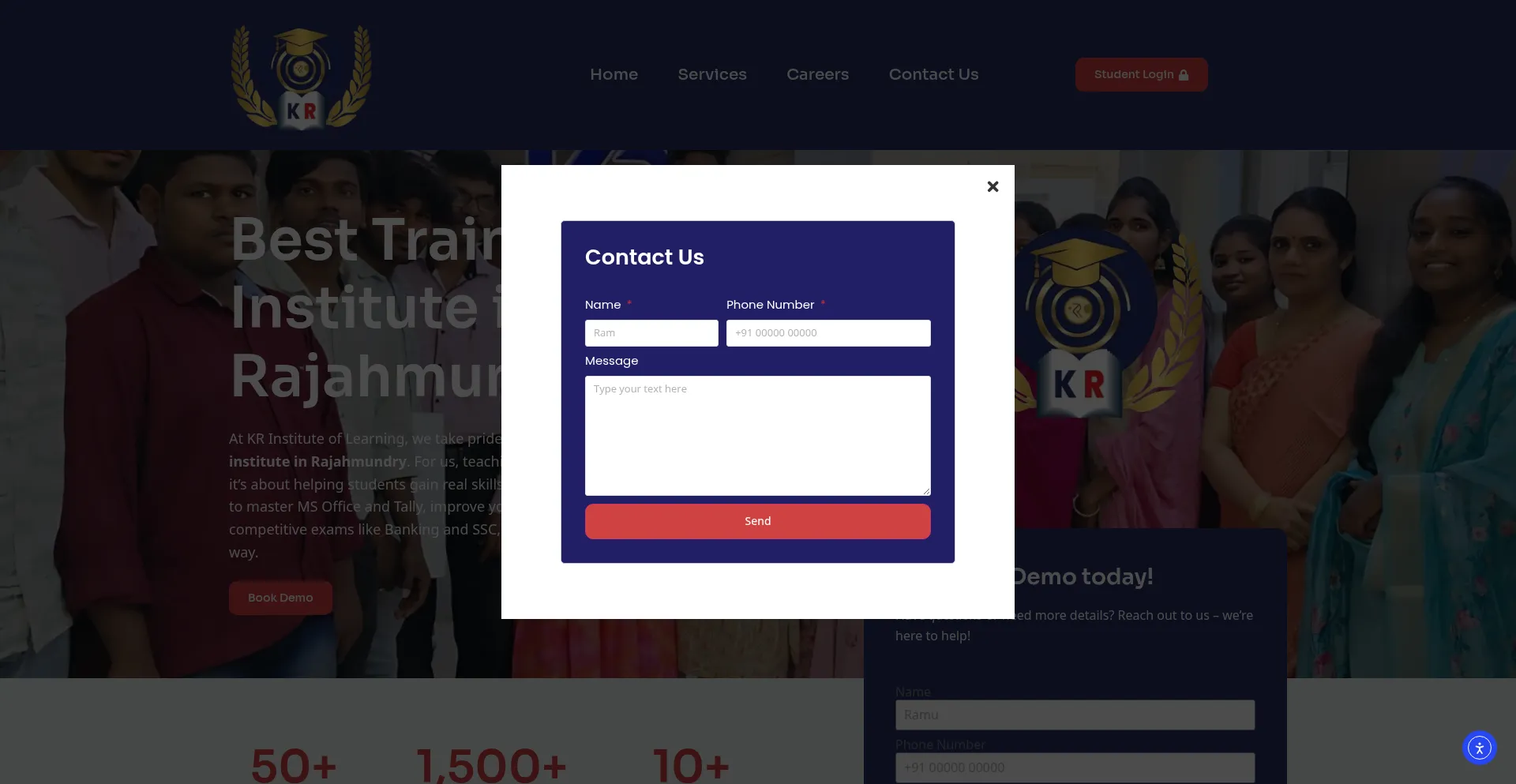 O site implementa formulários de coleta de dados solicitando informações pessoais incluindo nomes, endereços de e-mail, números de telefone ou outros detalhes sensíveis. Os usuários devem verificar a legitimidade de krinstituteoflearning.com e revisar políticas de privacidade antes de enviar dados pessoais.