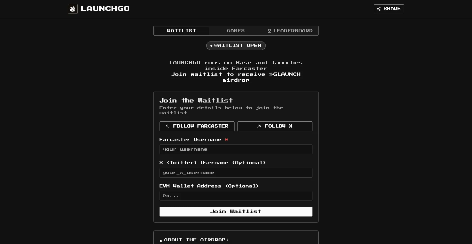 Join the LaunchGO waitlist to receive $GLAUNCH airdrop. Early supporters get premium allocation!