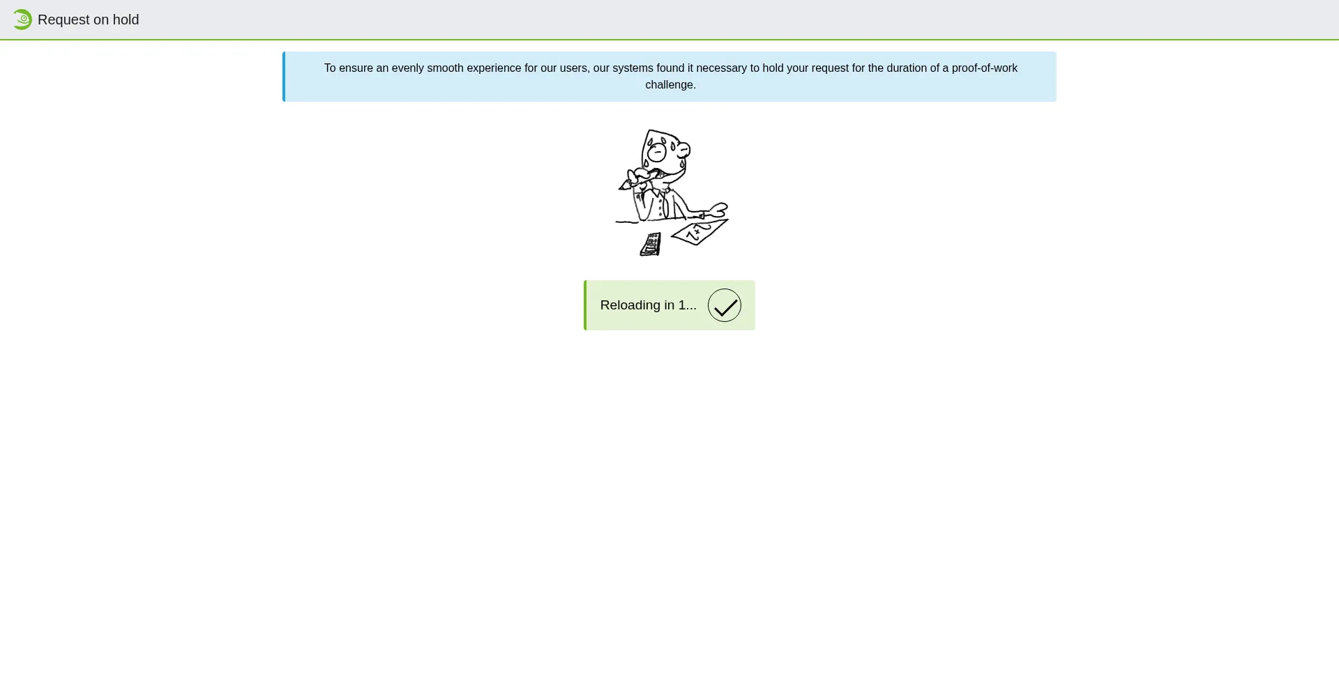 To ensure an evenly smooth experience for our users, our systems found it necessary to hold your request for the duration of a proof-of-work challenge.
