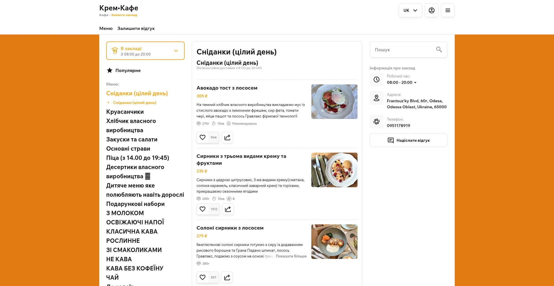 Крем•Кафе - Доставка, З собою - Сніданки (цілий день) - Сніданки (цілий день)
