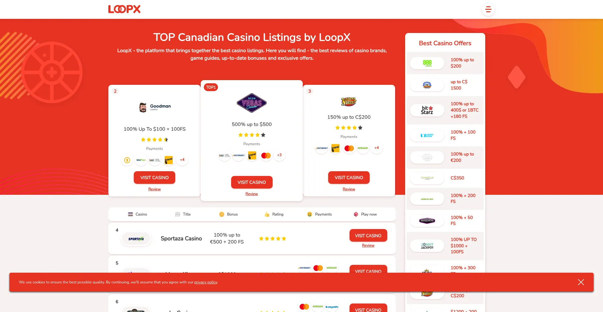 ① LoopX - Casino Listings for Canadian gamblers ▷ Rankings You Can Trust