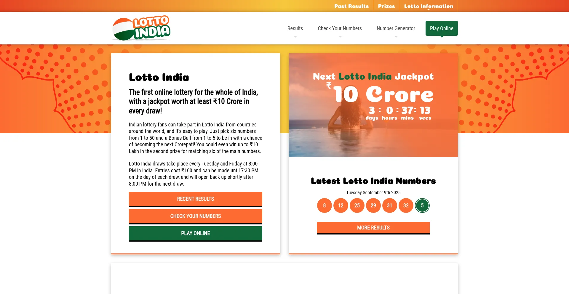 Lotto India is an online lottery game for Indians worldwide that offers jackpots of up to ₹10 Crore in every draw that only costs ₹100 to enter. Play online today!