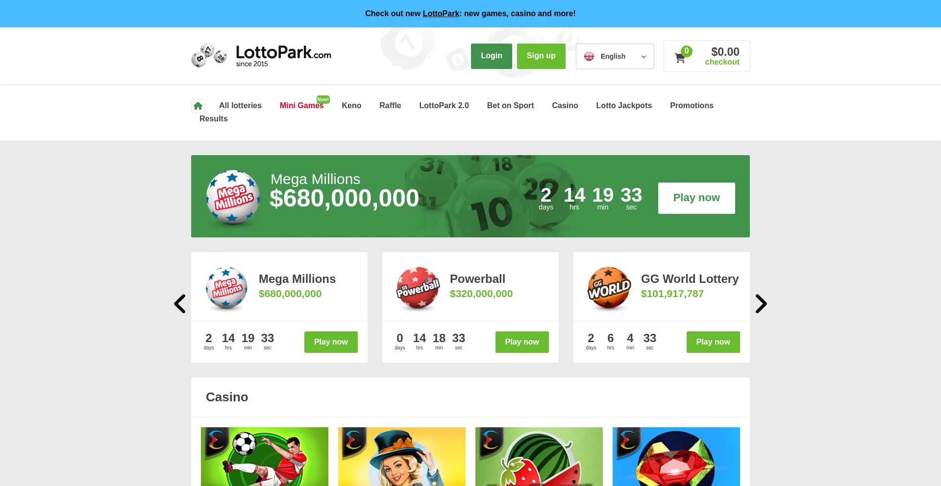 Play the lottery online with LottoPark! Meet world's biggest lotteries and buy lottery tickets online. Check lotto results, winning numbers!