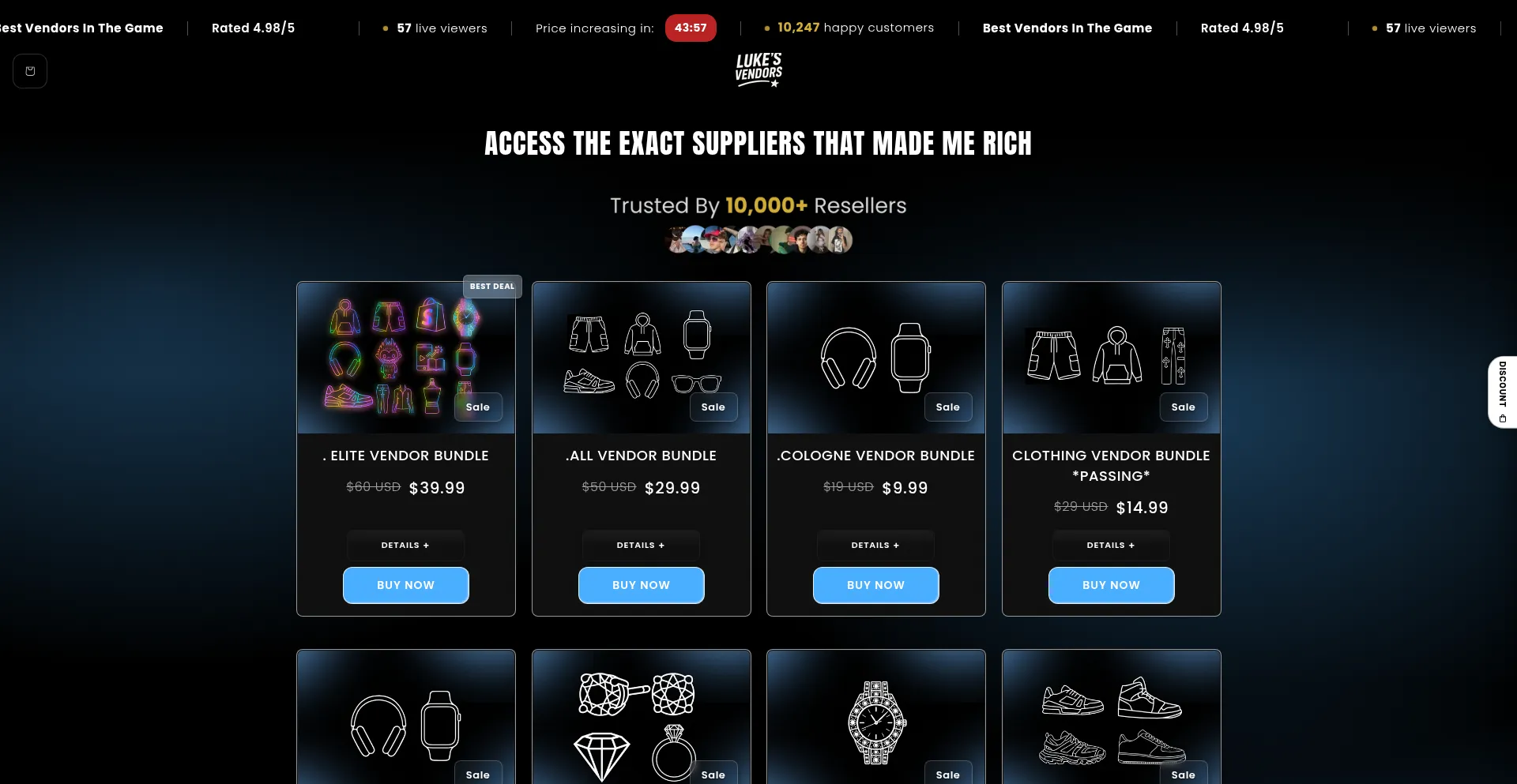 O site aproveita nomes de produtos populares e marcas para atrair tráfego e gerar interesse do usuário. Esses produtos podem ser oferecidos através de campanhas promocionais ou estratégias de desconto projetadas para aumentar o engajamento de visitantes e taxas de conversão para lukesvendors.com.