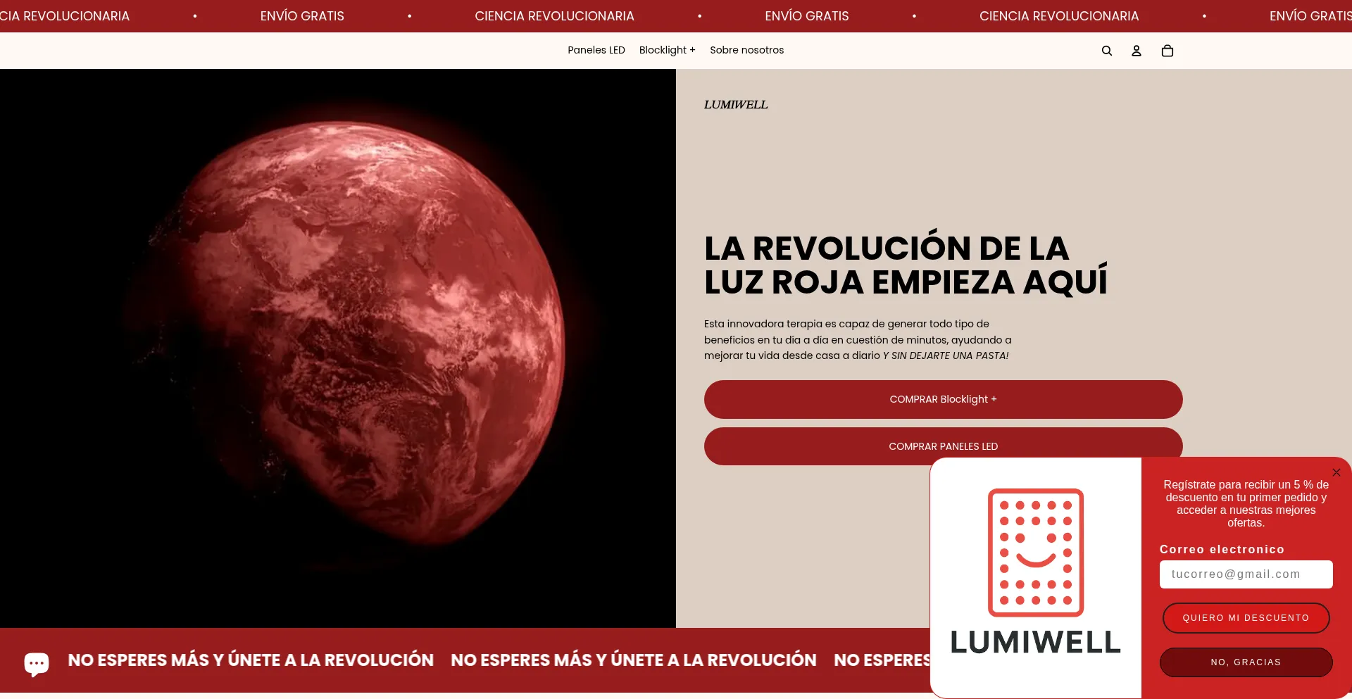 Ilumina tu bienestar con la tecnología de la luz roja. Descubre lámparas y paneles diseñados para potenciar tu energía, recuperar tu cuerpo y renovar tu piel. Tecnología av...