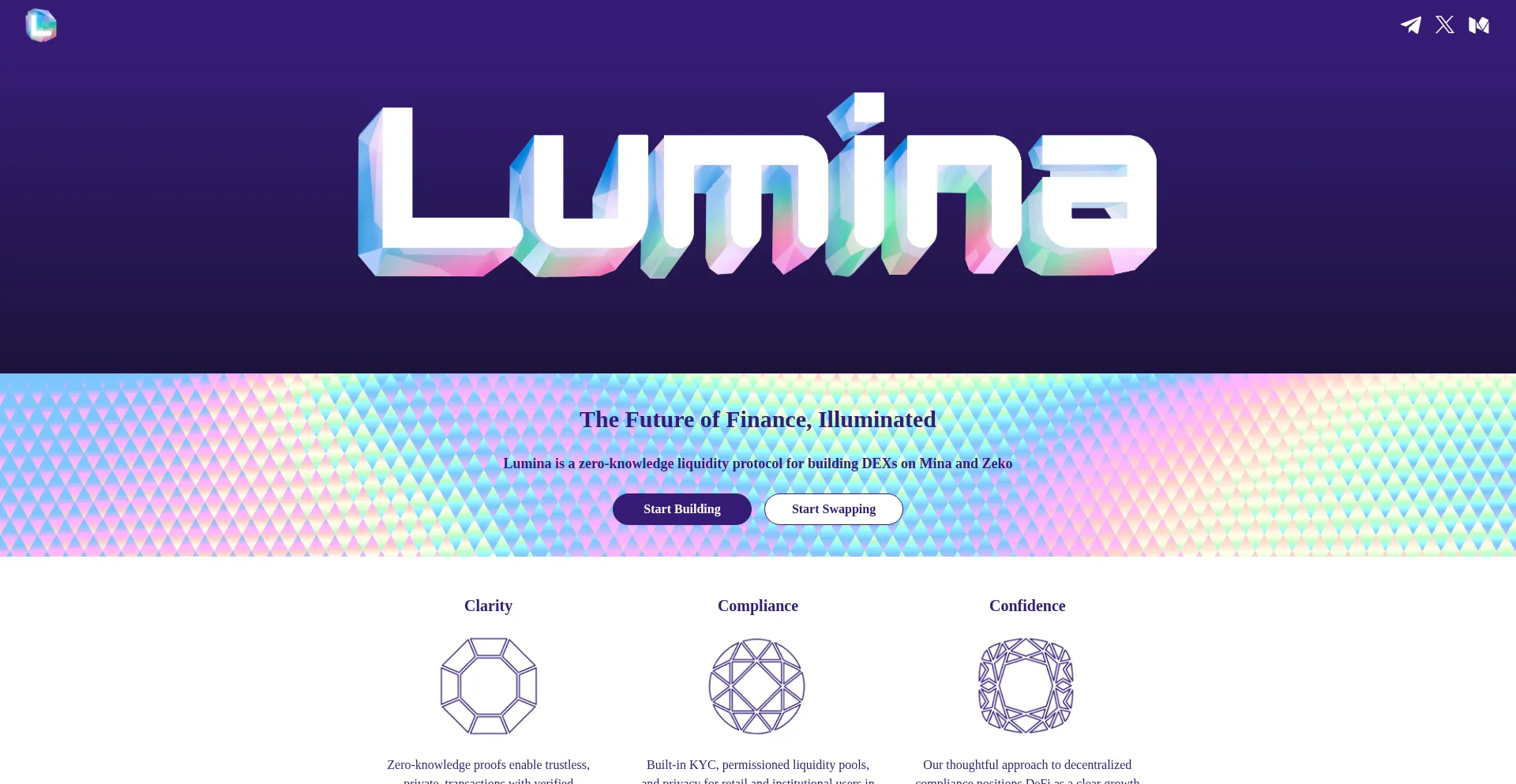 Lumina is a zero-knowledge, KYC-enabled, enterprise-ready DEX on Mina
