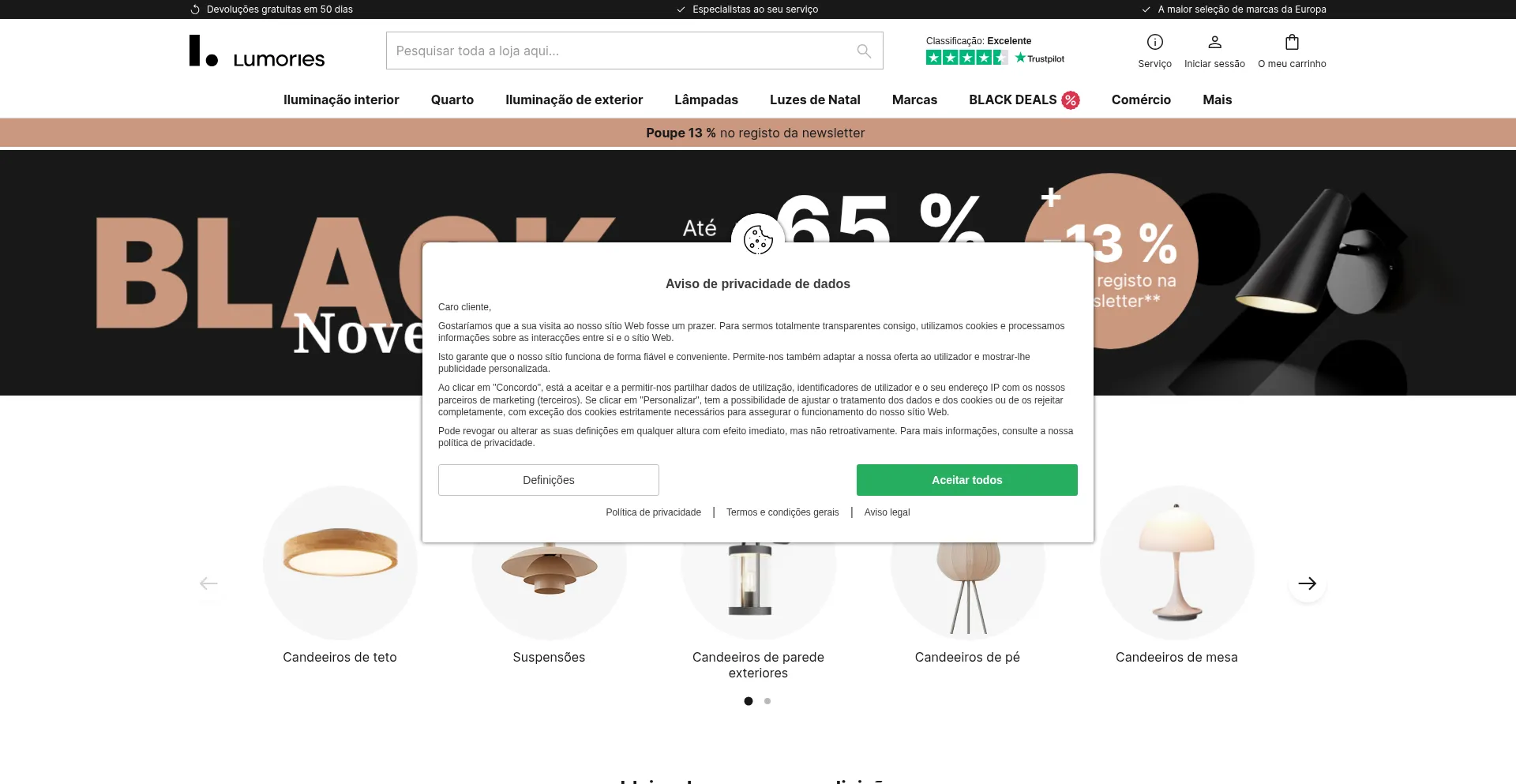 Candeeiros e iluminação para comprar online | Lumories.pt