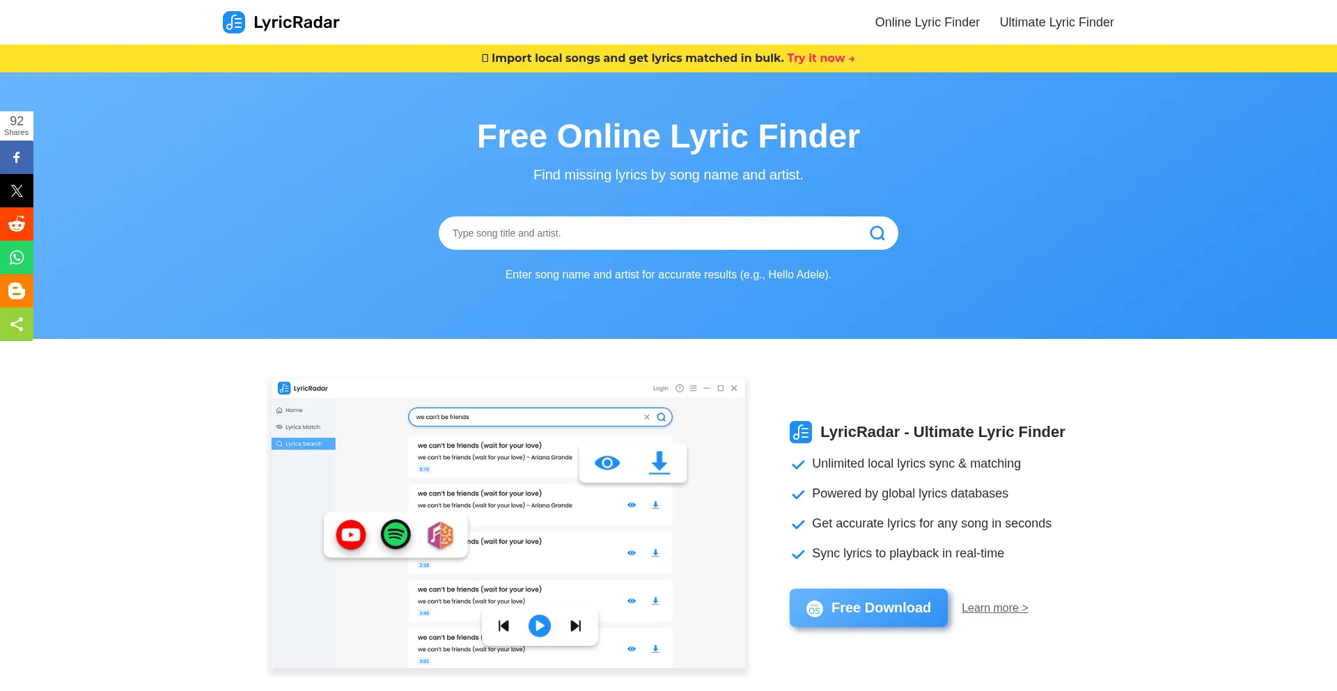 Lyricradar.com Avaliação do site