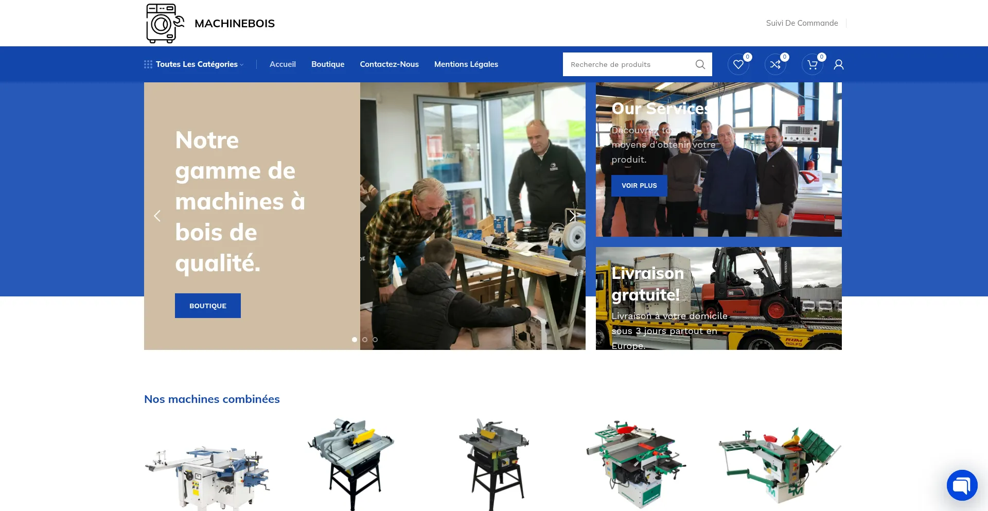 Vente de machines à bois haut de gamme pour professionnels. Scies, raboteuses, affûteuses avec garantie 3 ans. Prix direct usine