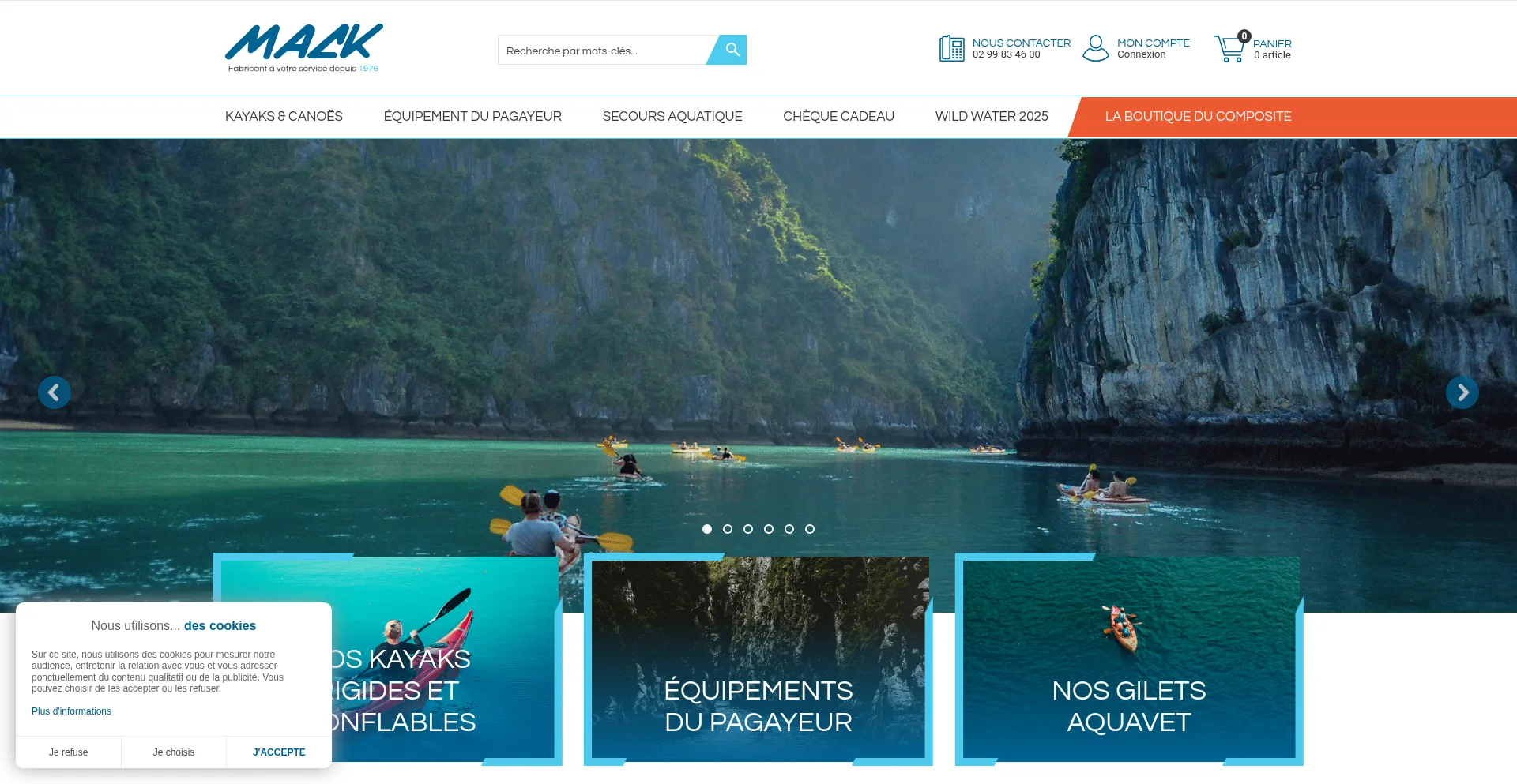 Vente d'équipement nautique, vêtement étanche et thermique. Fabriquant de gilet de sauvetage. Spécialiste des kayaks rigides, gonflable mer et rivière.
