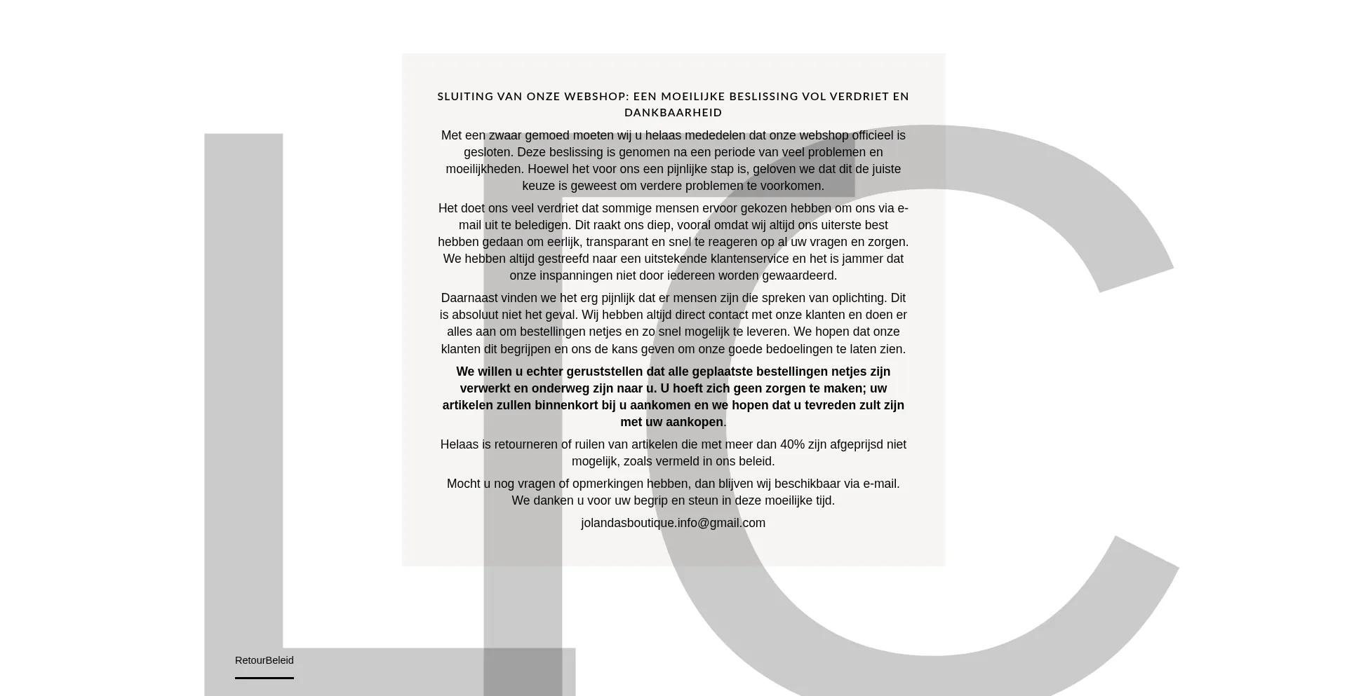 Met een zwaar gemoed moeten wij u helaas mededelen dat onze webshop officieel is gesloten.