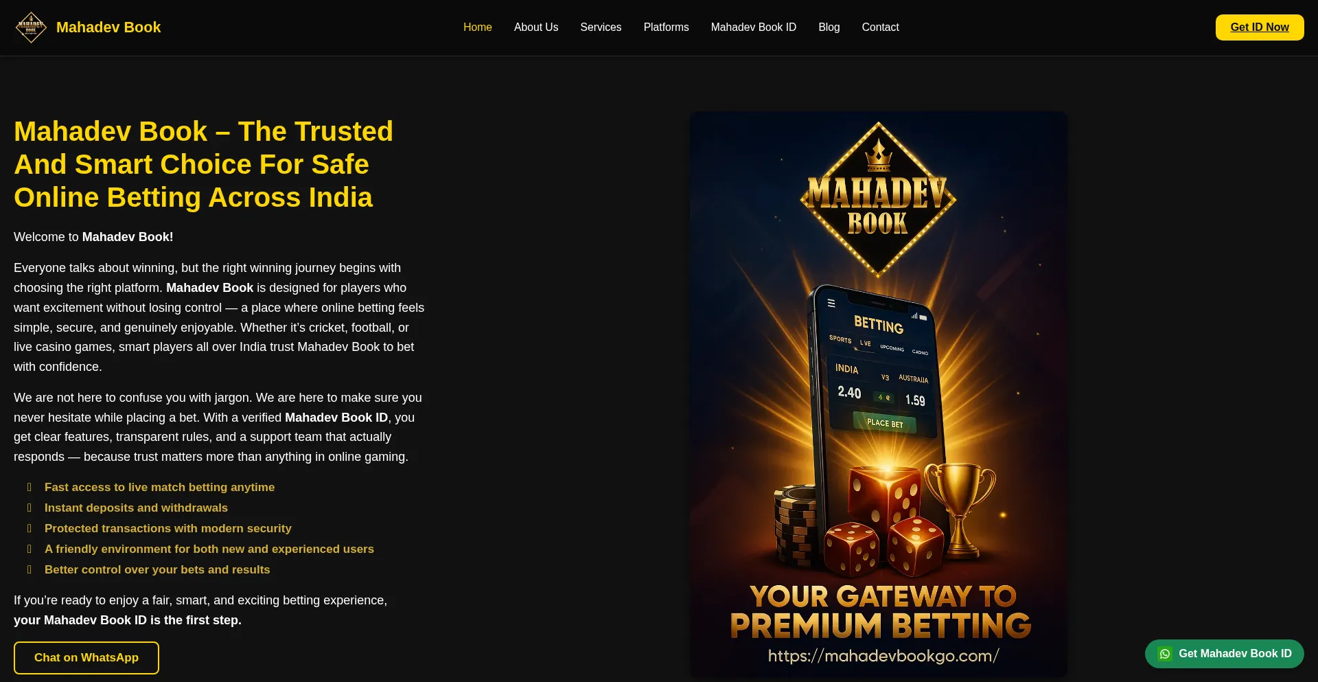 Join Mahadev Book for secure betting IDs, cricket, football & casino games. Get instant Mahadev Book ID, fast UPI deposits, and 24/7 support.